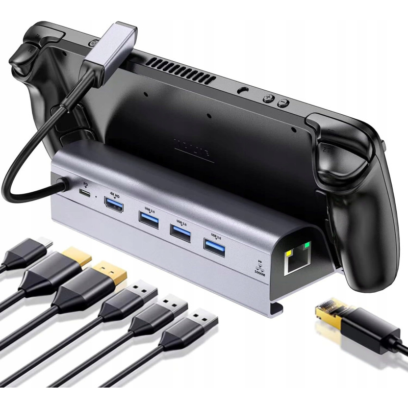 Stacja Dokująca Steam Deck 6w1 dla do Hub USB C Ethernet HDMI 4K ROG DEX