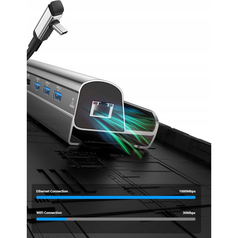 - Wielofunkcyjność: Umożliwia jednoczesne podłączenie monitora, internetu, urządzeń USB i ładowania – wszystko w jednym urządzeniu.