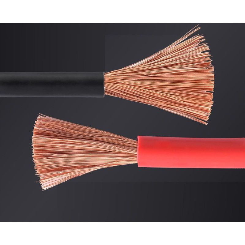 - 225 kabelków o grubości 0,30 mm: Gęste ułożenie przewodników zwiększa przewodność i wytrzymałość kabla, co czyni go solidnym rozwiązaniem do uruchamiania samochodów osobowych, SUV-ów i większych pojazdów.