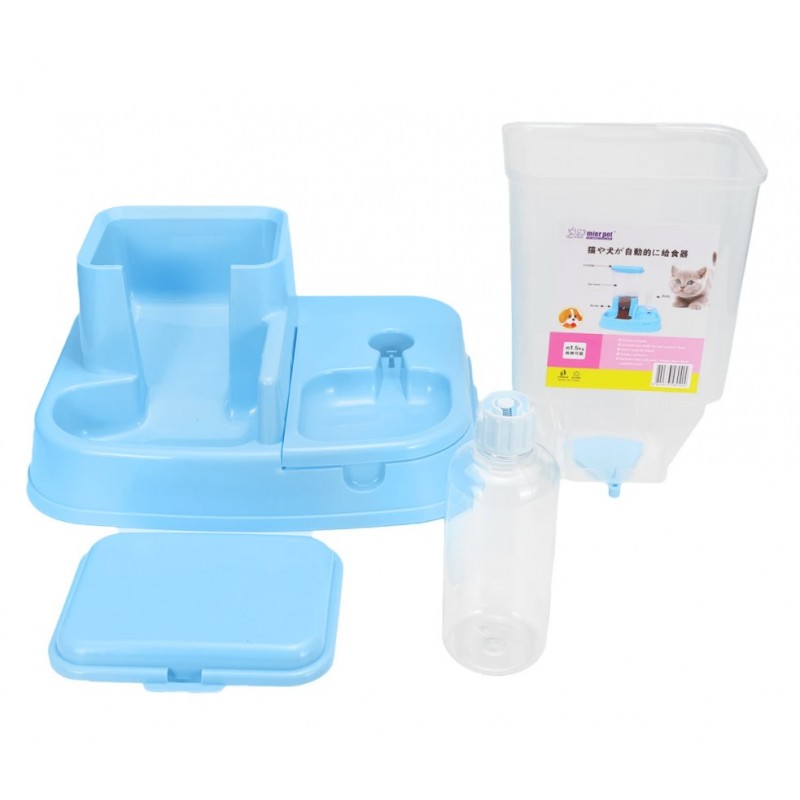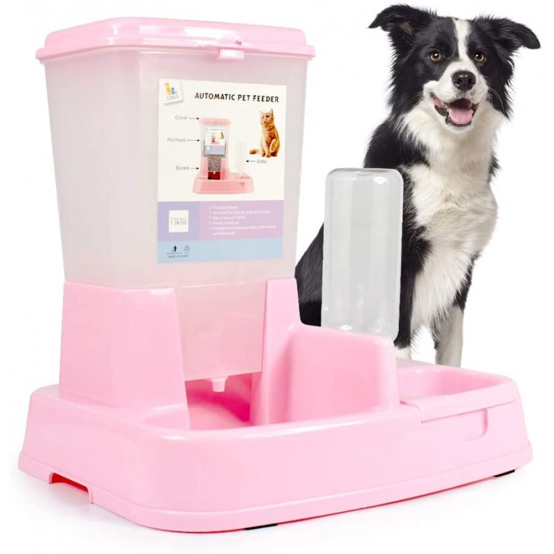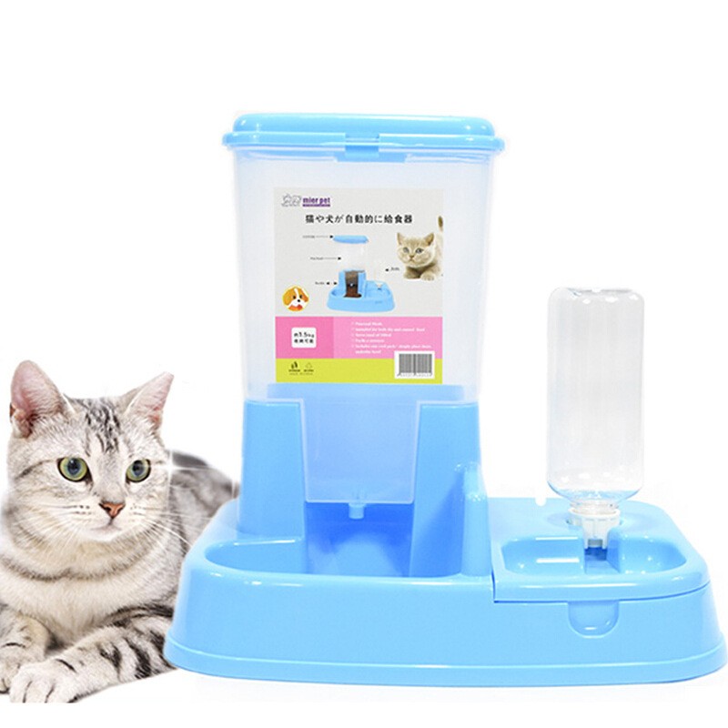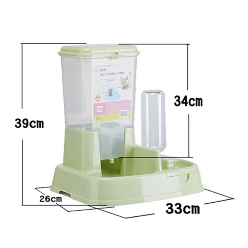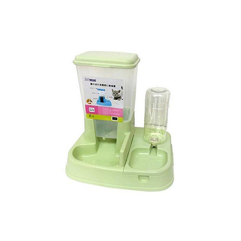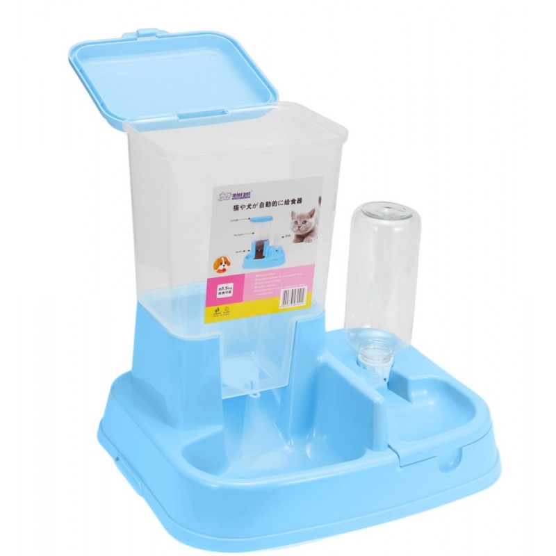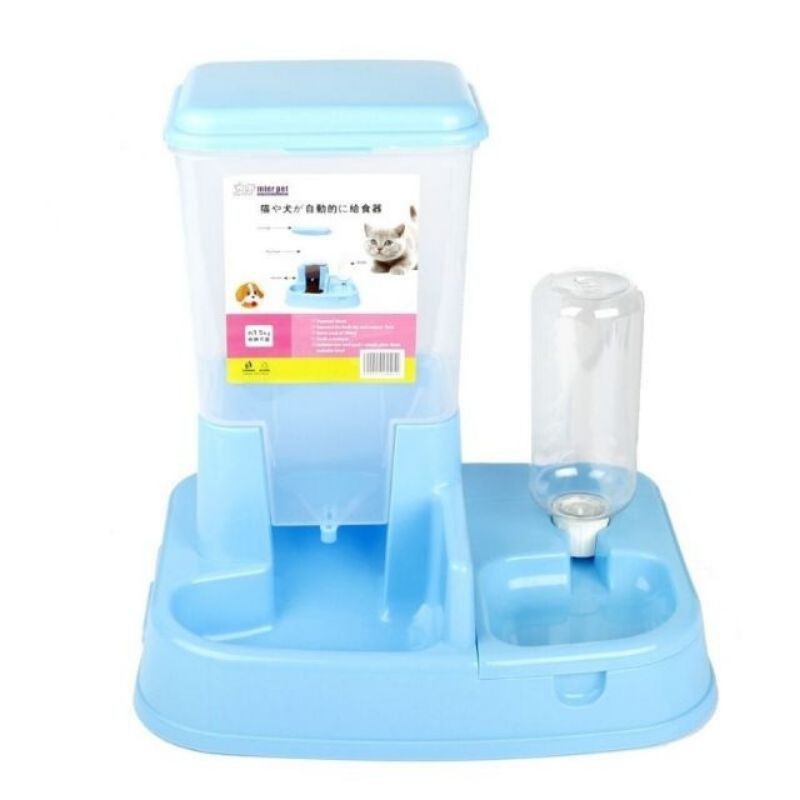 Automatyczny podajnik karmy i wody dla zwierząt domowych zawiera butelkę na wodę i puszkę na karmę. Zaspokaja potrzeby żywieniowe zwierząt domowych przez kilka dni, gdy nie ma Cię w domu.