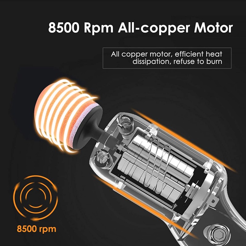 - Silny moment obrotowy z regulowaną prędkością obrotową. Regulowana prędkość usuwania filmu olejowego i naprawy zarysowań.