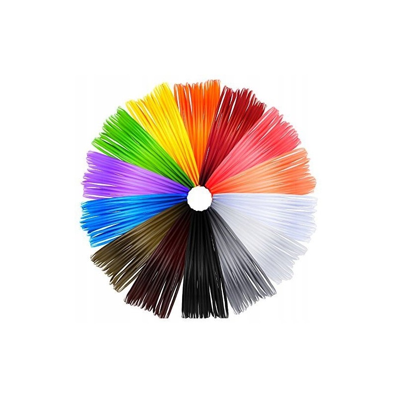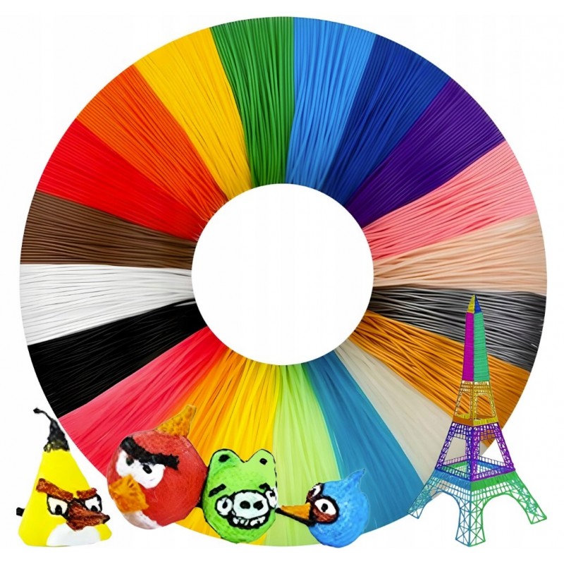 W zestawie znajduje się aż 100 metrów wymiennych wkładów PLA w 20 kolorach. Daje to możliwość kreatywnego tworzenia trójwymiarowych obiektów w dużej gamie kolorystycznej.