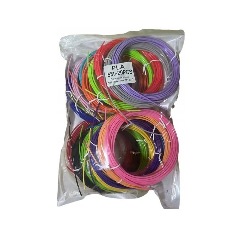 Wkłady do długopisu 3D Pen 100m Filament 20 KOLORÓW x 5m, średnica 1.75