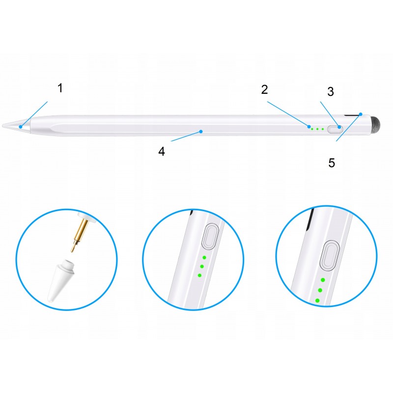 - Eliminacja - włączanie rysika poprzez dotyk - Rysik ten posiada włącznik ON/OFF w górnej części pióra, oferowany w innych aukcjach przycisk dotykowy nie sprawdzał się, potrafił wyłączyć rysik przy drganiach rysika co powodowało dużo problemów przy użytkowaniu. Zwykły przełącznik eliminuje wszelkie problemy i gwarantuje komfort użytkowania bez przerywania.