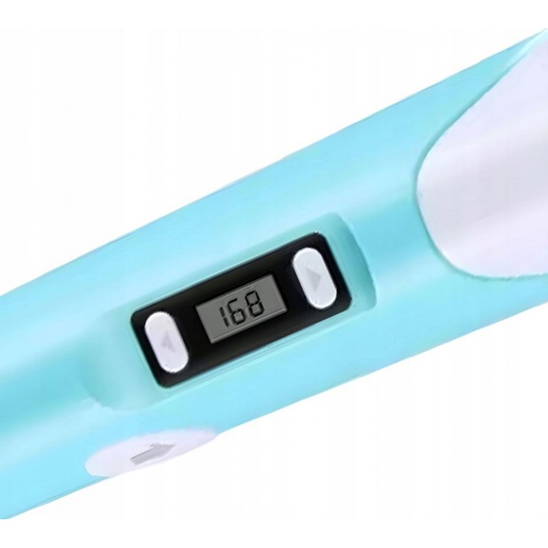Długopis 3D posiada wyświetlacz LCD, który pokazuje aktualną temperaturę dyszy pena 3D. Dzięki niemu możemy dostosować ilość stopni do każdego materiału z jakim pracujemy np. inną temperaturę dla filamentu PLA a inną dla ABS.