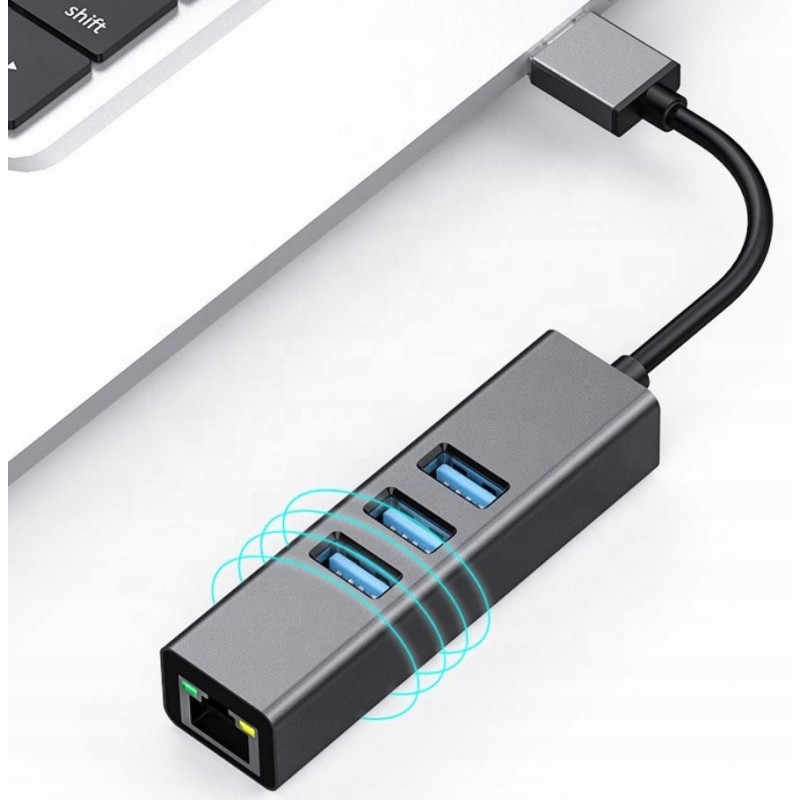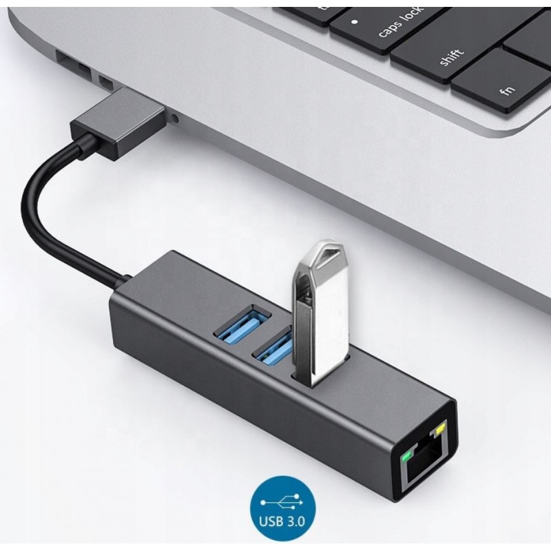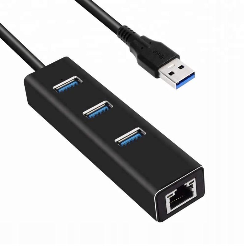 Adapter USB Hub Ethernet pozwoli podłączyć nam do 3 urządzeń USB-A do komputera lub laptopa, takich jak zewnętrzny dysk twardy, pamięć flash USB, mysz, klawiatura, słuchawki USB, głośniki , kamera internetowa USB itp.