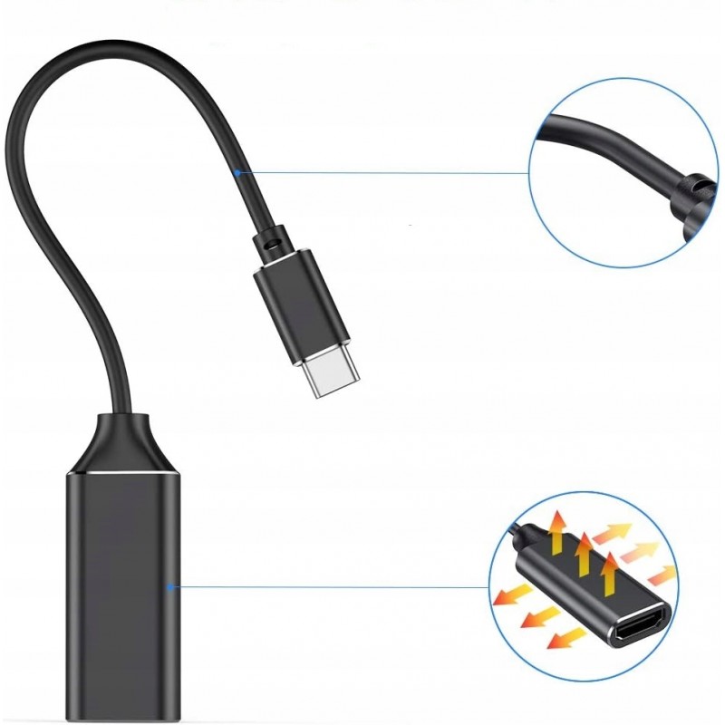 Nowoczesna przejściówka z USB typ C na HDMI umożliwia przesyłanie bez zakłóceń sygnału audio oraz video w jakości 4K laptopów, telefonów, tabletów wyposażonych w złącze USB typu C lub Thunderbolt 3.0 do telewizorów, monitorów, projektorów i innych urządzeń wyposażonych w złącze HDMI.