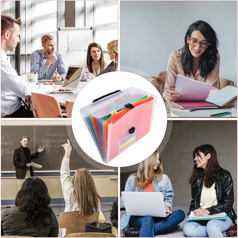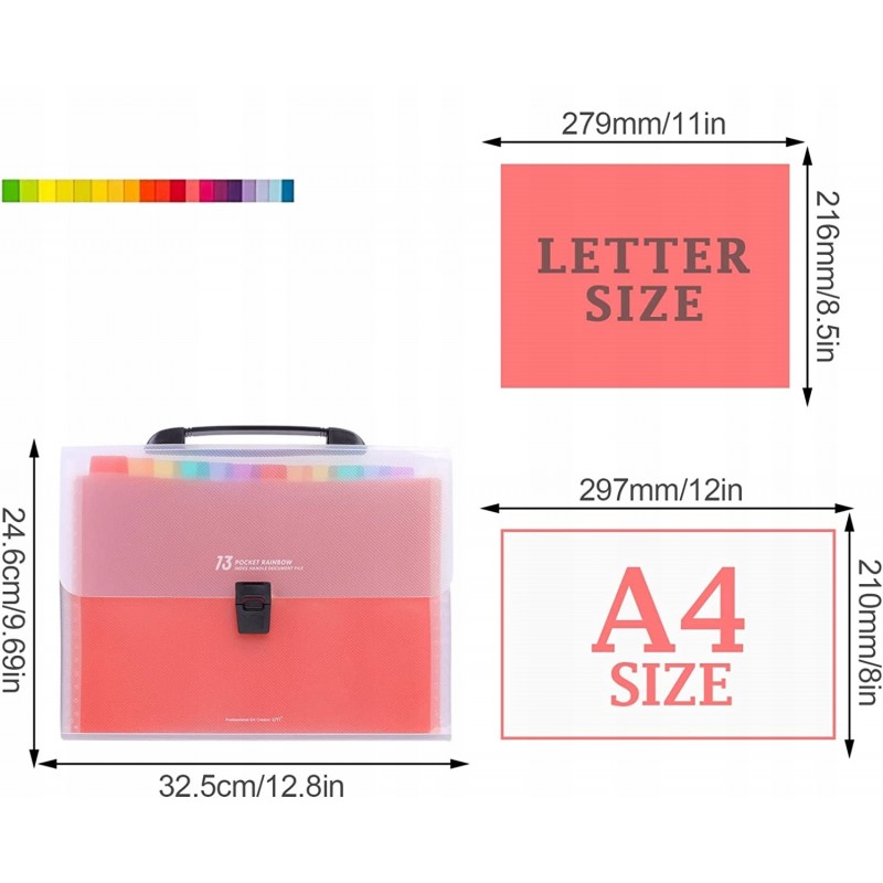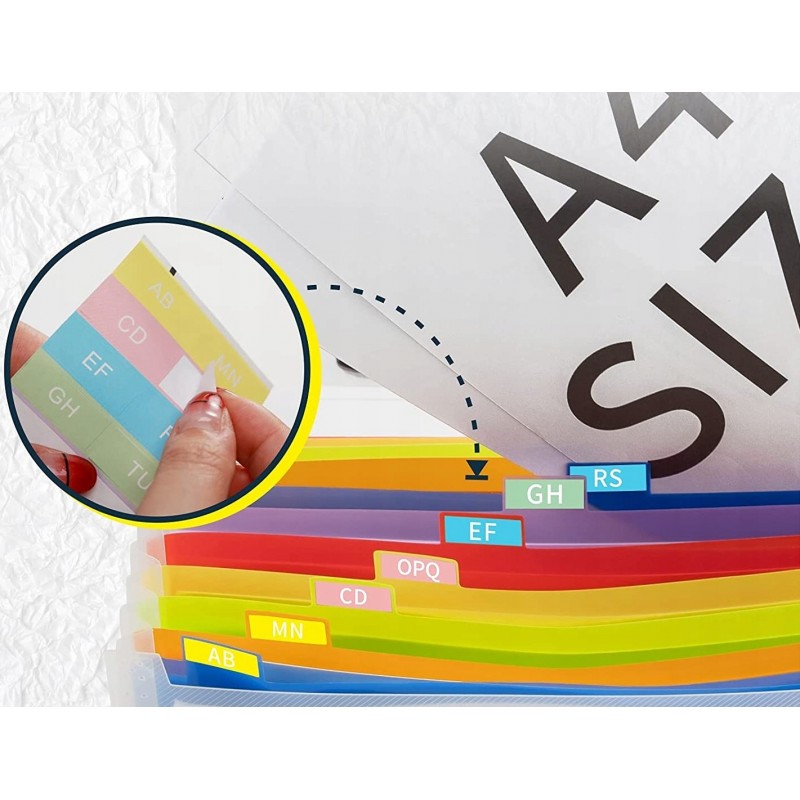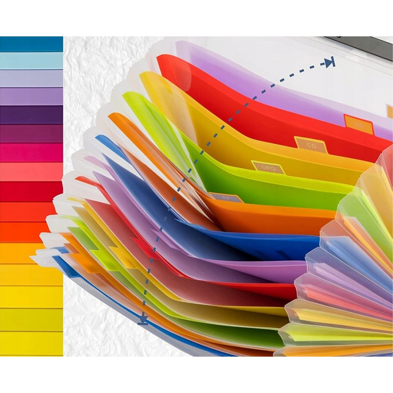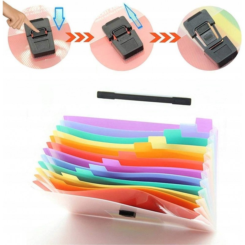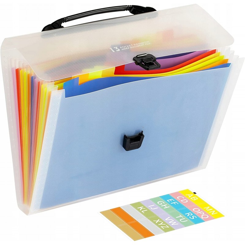 Oszczędza czas - 13 kolorowych kieszenie z górnymi zakładkami tworzą niezależne miejsca na dokumenty. Można użyć dostarczonych kolorowych etykiet do sortowania dokumentów według kategorii, co skraca czas wyszukiwania dokumentów.