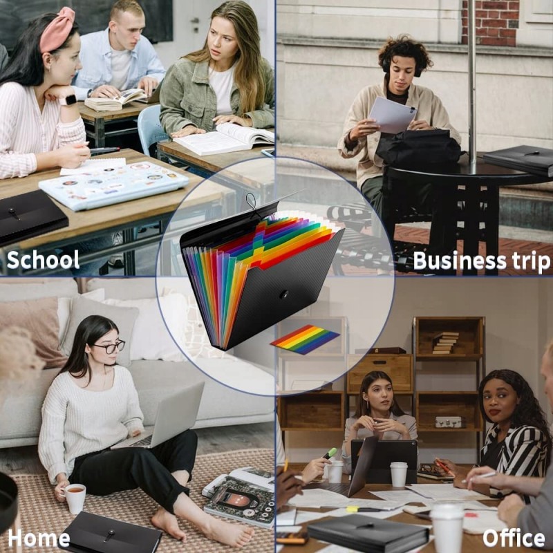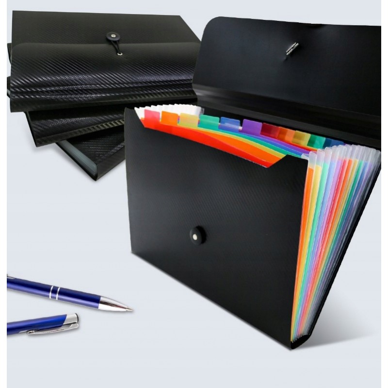 Oszczędza czas - 13 kolorowych kieszenie z górnymi zakładkami tworzą niezależne miejsca na dokumenty. Można użyć dostarczonych kolorowych etykiet do sortowania dokumentów według kategorii, co skraca czas wyszukiwania dokumentów.