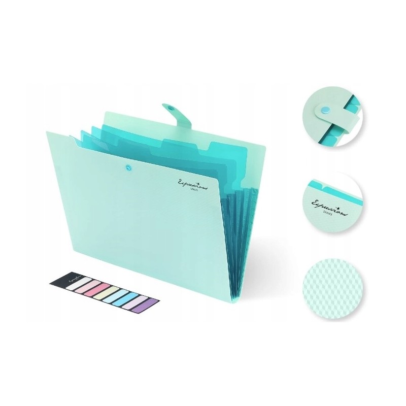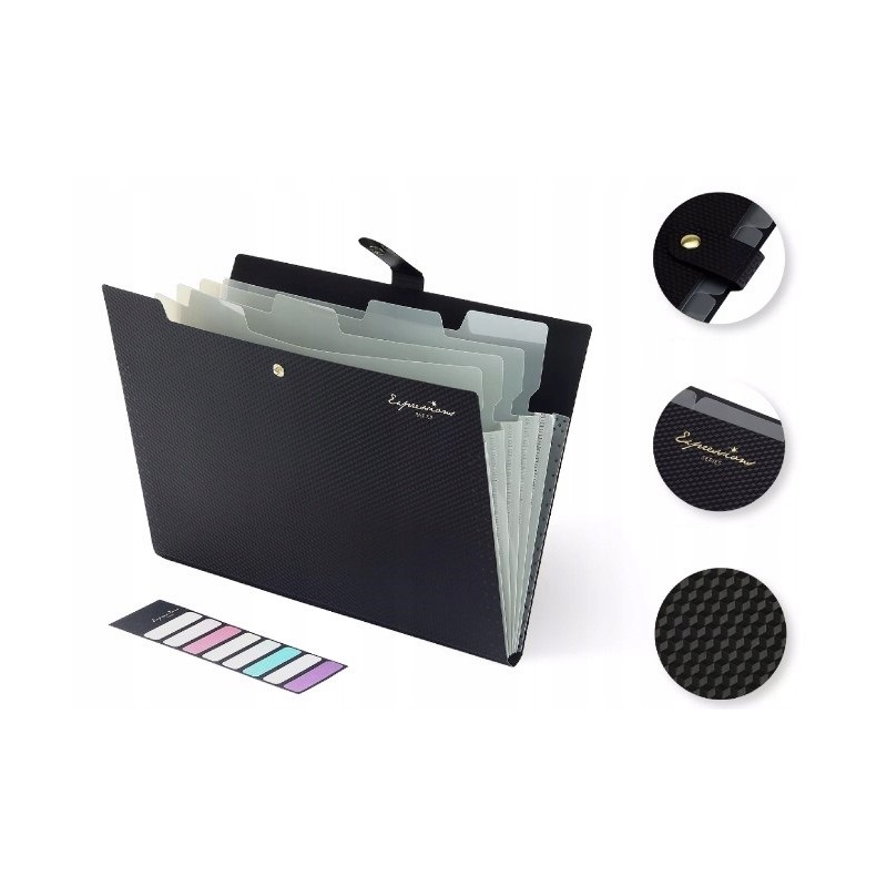 Oszczędza czas - 5 kieszenie z górnymi zakładkami tworzą niezależne miejsca na dokumenty. Można podpisać kieszenie do sortowania dokumentów według kategorii, co skraca czas wyszukiwania dokumentów.