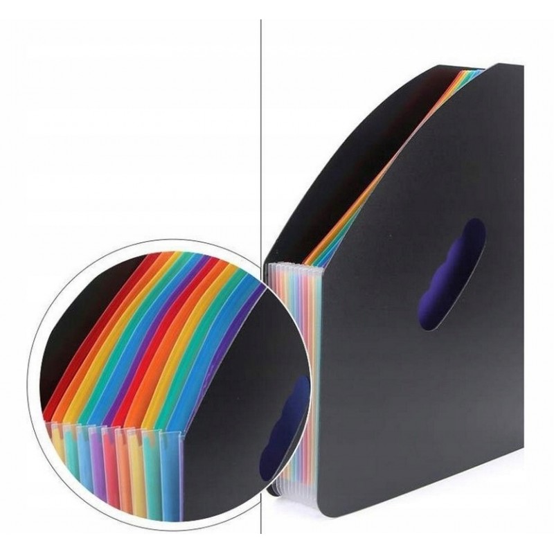 Konstrukcja harmonijki z rozwijanym dnem zapewnia dodatkową pojemność, a także oferuje możliwość postawienia organizera na blacie biurka.