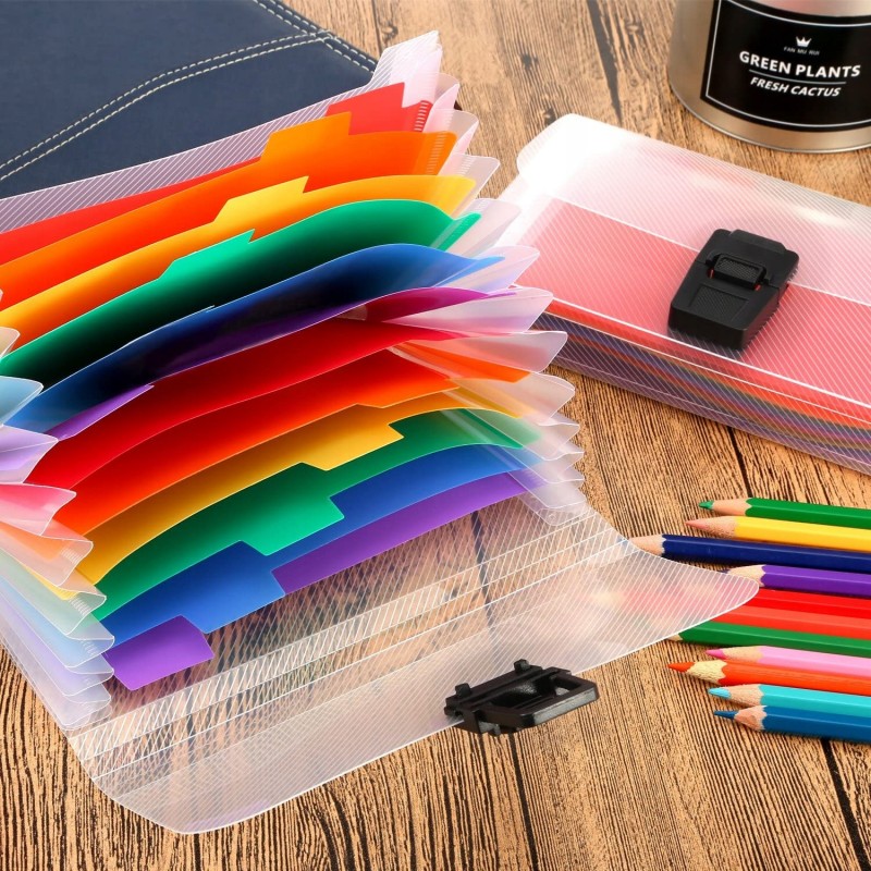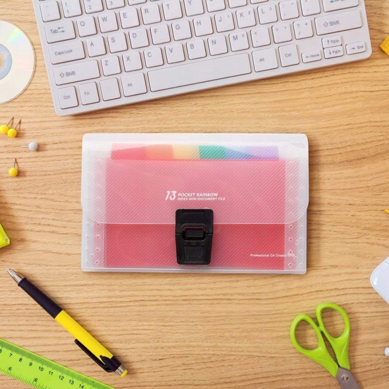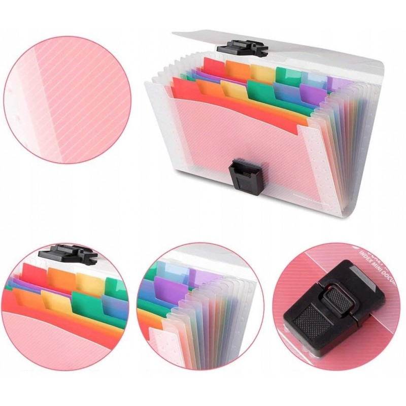 Oszczędza czas - 13 kolorowych kieszenie z górnymi zakładkami tworzą niezależne miejsca na dokumenty. Można użyć dostarczonych kolorowych etykiet do sortowania dokumentów według kategorii, co skraca czas wyszukiwania dokumentów.