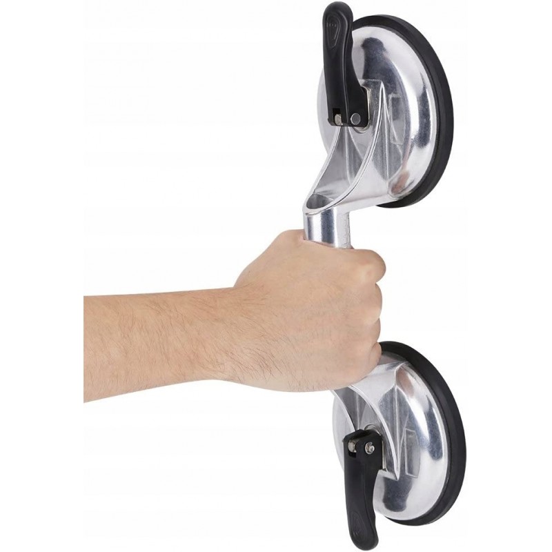 Wysokiej jakości uchwyt/przyssawka renomowanej przeznaczona do przenoszenie elementów o płaskiej i gładkiej powierzchni takich jak np. szyby, okna, szyby samochodowe, arkusze blach, laminaty itp., których waga nie przekracza 100kg.