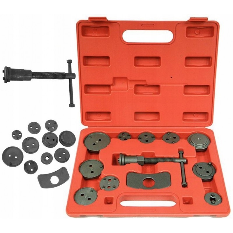 Zestaw do Wyciskania Naprawy Tłoczków Hamulcowych przeznaczony jest do cofania (wyciskania) tłoczków w cylinderkach układów hamulcowych. Zestaw idealnie nadaję się do warsztatu czy serwisu samochodowego, a także do garażu każdego majsterkowicza.