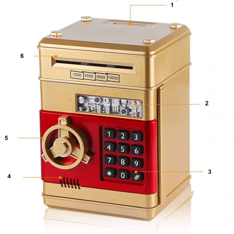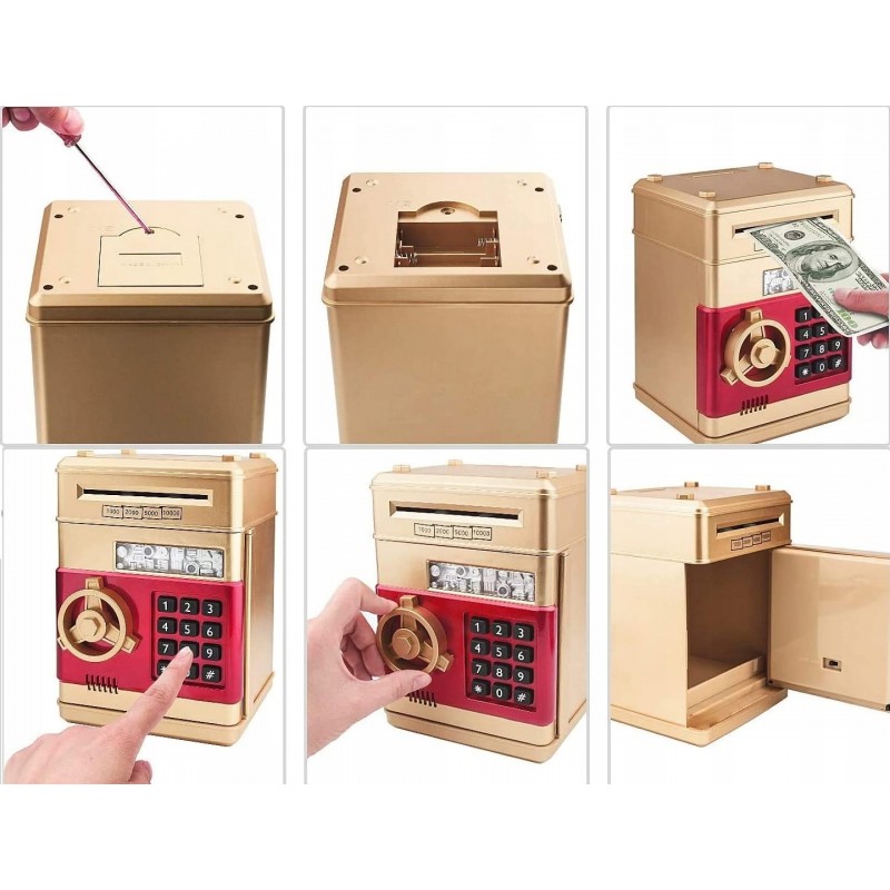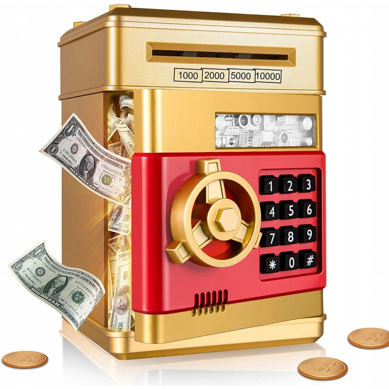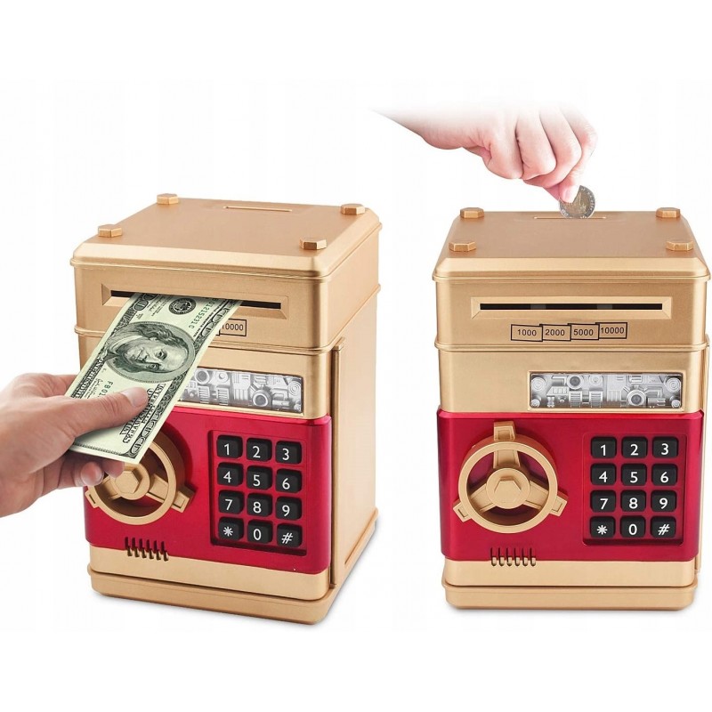 SEJF SKARBONKA NA MONETY BANKNOTY WPŁATOMAT + PIN (ZŁOTY)
