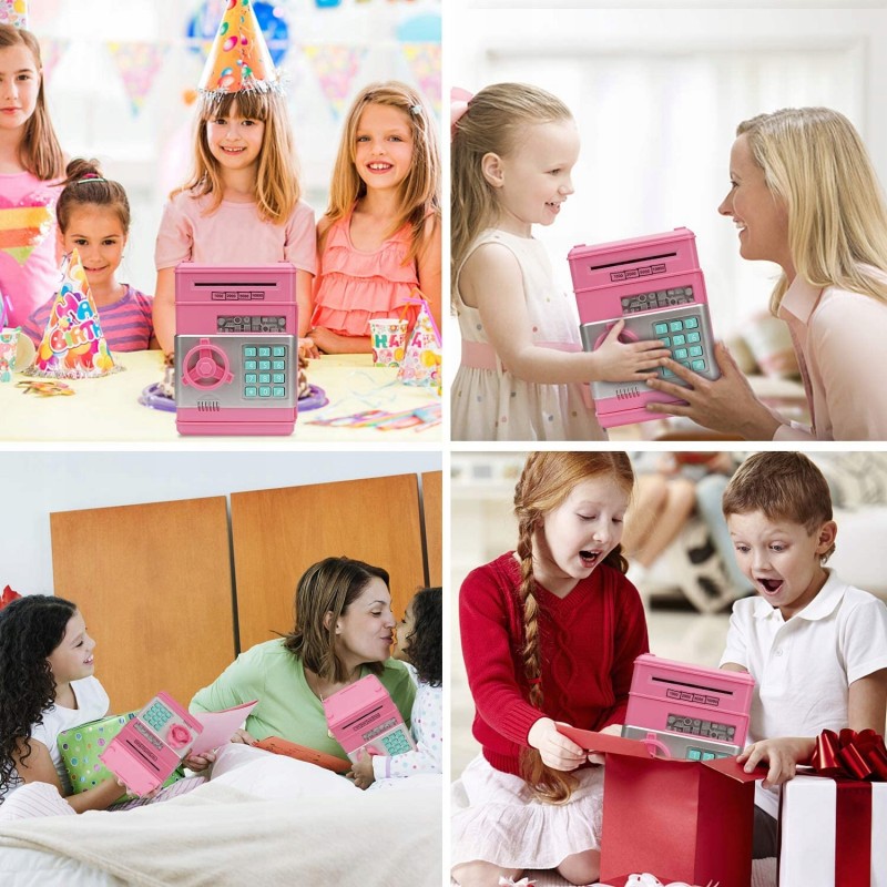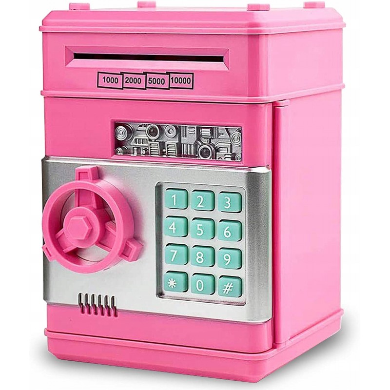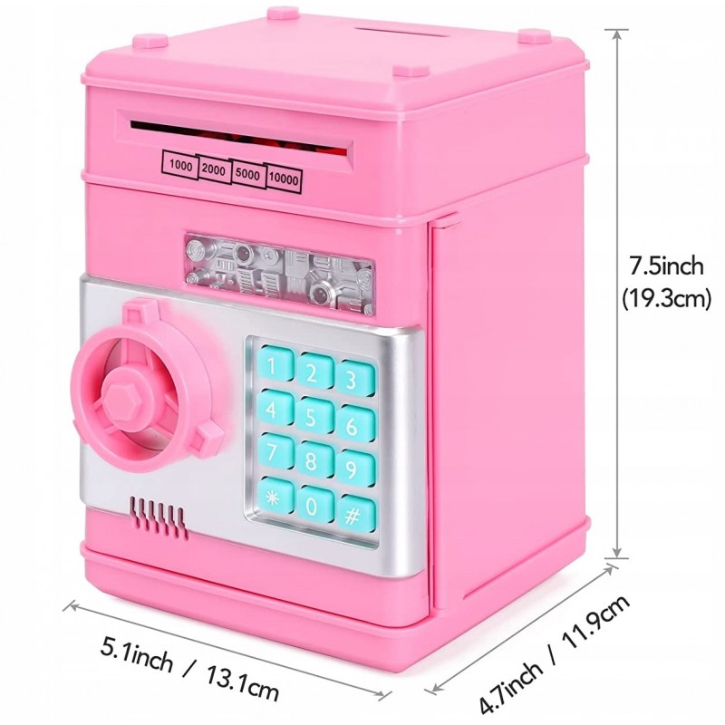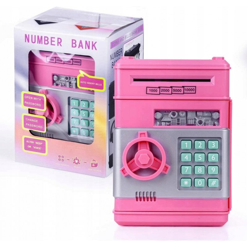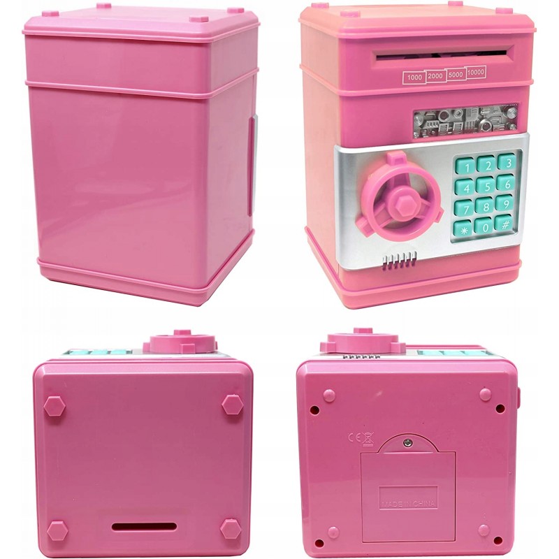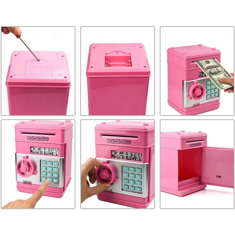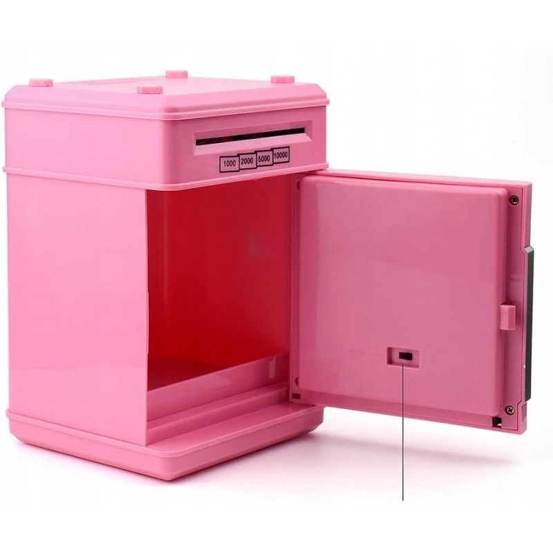 SEJF SKARBONKA NA MONETY BANKNOTY BANKOMAT + PIN (RÓŻOWY)
