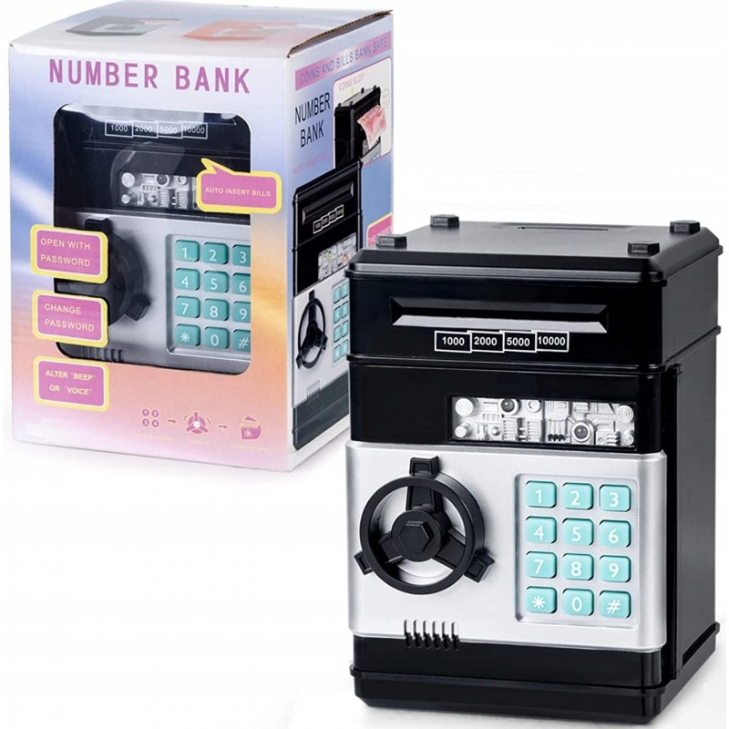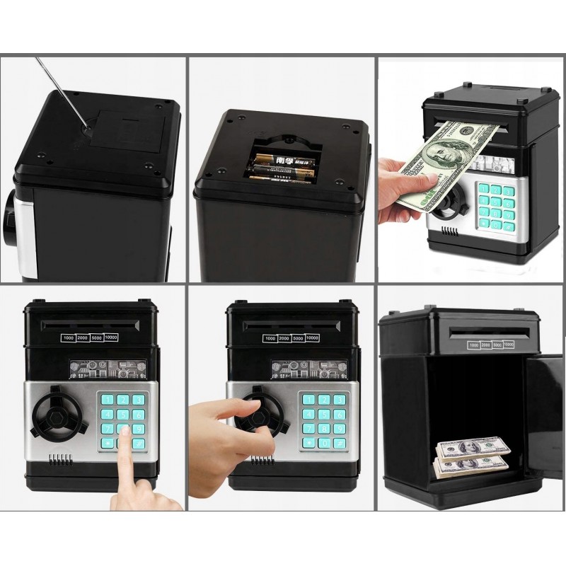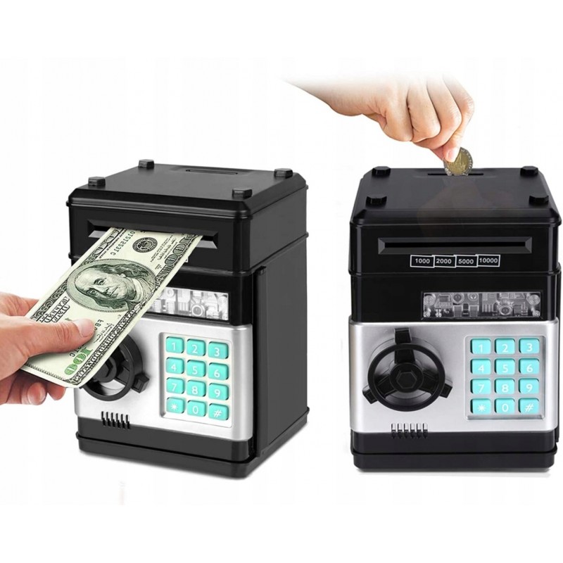 SEJF SKARBONKA NA MONETY BANKNOTY BANKOMAT + PIN (CZARNY)
