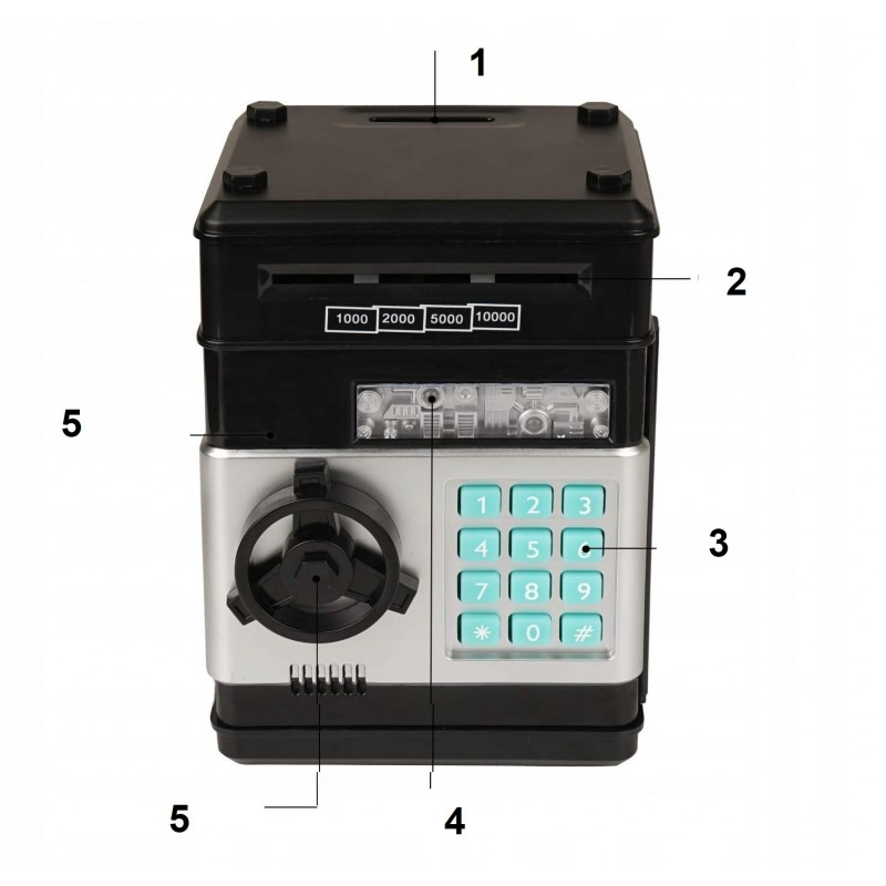 Łatwość użycia - sejf na monety jest prosty w użyciu i poradzi sobie z nim dziecko. Wystarczy wrzucać monety do otworu i jak najrzadziej opróżniać skarbonkę, aby zebrać oszczędności.