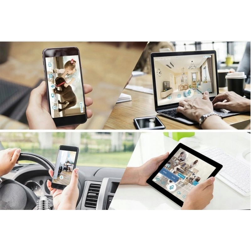 Kamery w żarówce są idealnym uzupełnieniem typowego monitoringu. Ze względu na swój nietypowy wygląd mogą również pełnić funkcję kamer szpiegowskich. Kamery dzięki wbudowanemu modułowi WIFI możemy podłączać do swojej sieci WiFi bez żadnej dodatkowej instalacji. Przez aplikację mamy podgląd tego - co sie dzieje obecnie w monitorowanym pomieszczeniu.