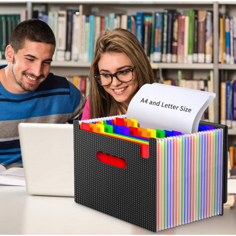 Oszczędza czas - 24 kolorowe kieszenie z górnymi zakładkami tworzą niezależne miejsca na dokumenty. Można użyć dostarczonych kolorowych etykiet do sortowania dokumentów według kategorii, co skraca czas wyszukiwania dokumentów.