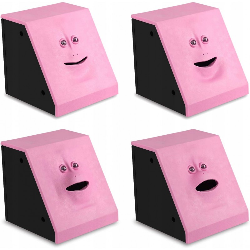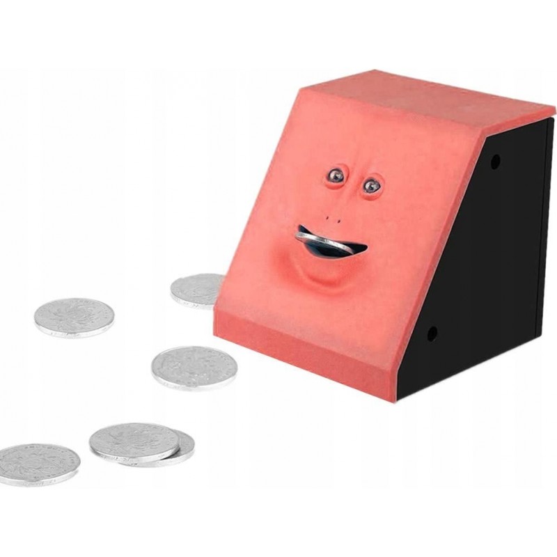 Wbudowany czujnik wykrywa dłoń dziecka. W tym momencie zabawka otwiera szeroko usta. Dziecko może włożyć monetę do otwartych ust. Twarz połyka monetę. Podczas połykania monety Twarz porusza ustami, jakby ja przeżuwała oraz generuje dźwięki. Mimika twarzy podczas przełykania monety wywołuje u każdego uśmiech.