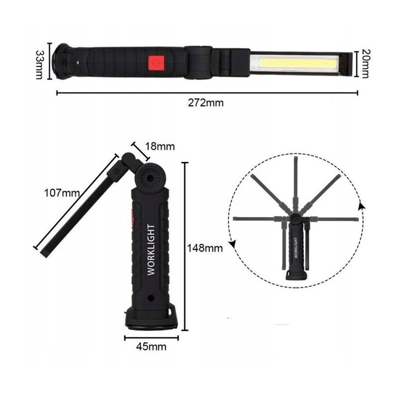 DUŻA LAMPA LATARKA WARSZTATOWA LED COB MAGNES USB