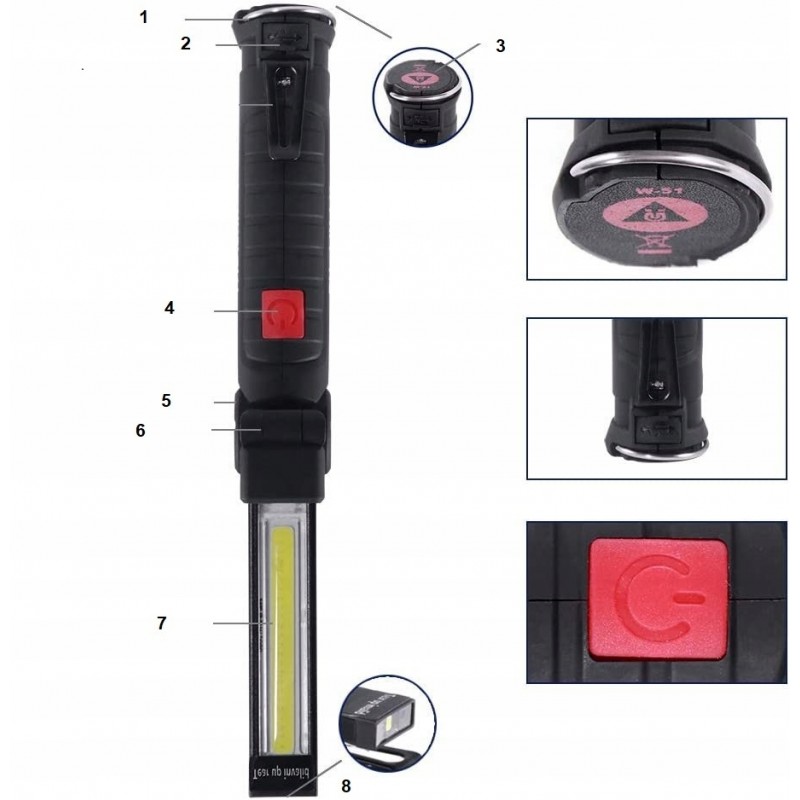 Podsumowując, lampa warsztatowa W51 z pięcioma trybami świecenia i magnesem, zasilana z akumulatora, to niezbędne narzędzie dla każdego majsterkowicza. Zapewniając różne opcje oświetlenia i elastyczność użytkowania, ta lampa jest niezastąpiona w różnorodnych sytuacjach.