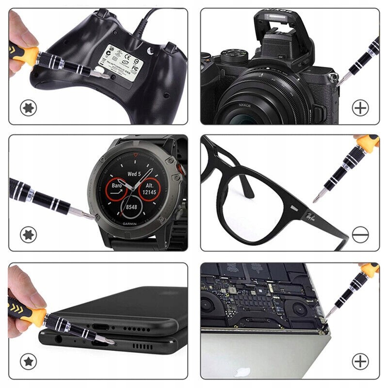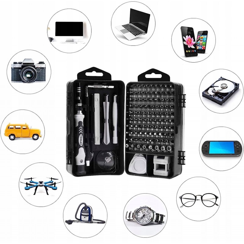 Zestaw może być wykorzystana we wspólnej naprawie urządzeń, takich jak telewizory, klimatyzatory, wentylatory, lodówki, samochody, drony, okulary, zegarki, odkurzacze itp. Jest to również konieczność w demontażu i konserwacji telefonów komórkowych, aparatów cyfrowych, zegarków, szklanek, laptopów, laptopów i konsol do gier.