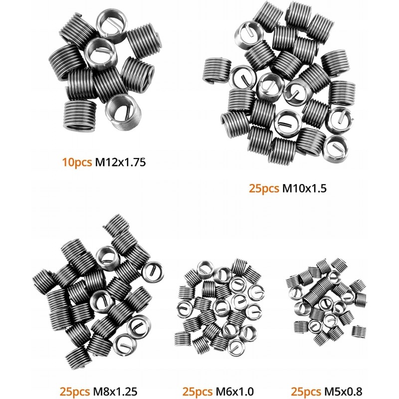 Zestaw do naprawy gwintów jest idealnym narzędziem do uszkodzonych gwintów w miękkich metalach. Nadaje się do gwintów M5, M6, M8, M10 i M12. Zabezpiecza je przed zużyciem i uszkodzeniem.