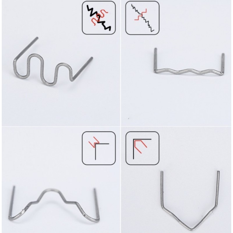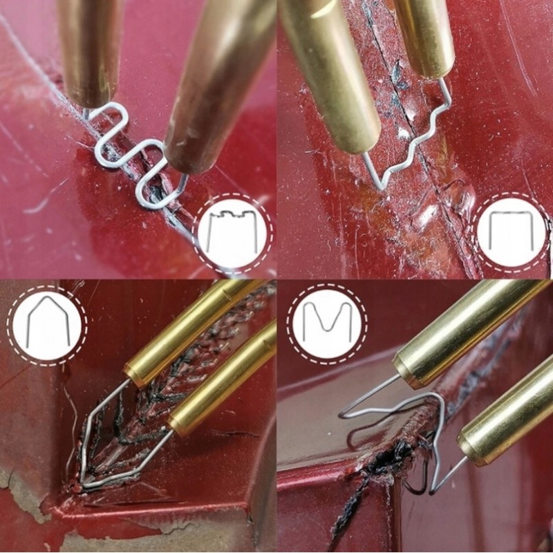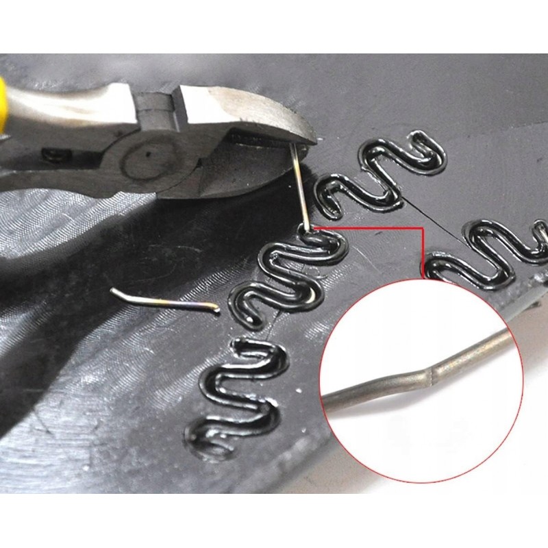 W zestawie 200 zszywek za pomocą których urządzenie trwale połączy ze sobą pęknięte elementy plastikowe a miejsce łączenia będzie odporne na wstrząsy i skręcanie.