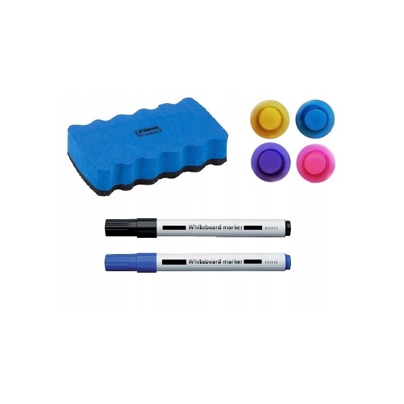 - Akcesoria w zestawie: Komplet markerów suchościeralnych, gąbka oraz magnesy w zestawie, by od razu rozpocząć pracę.