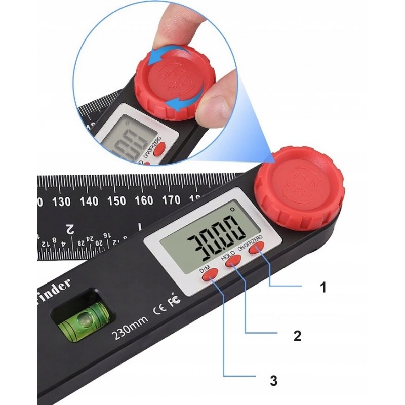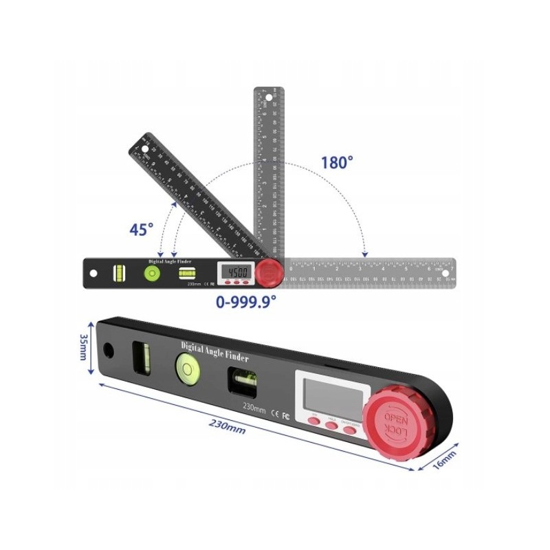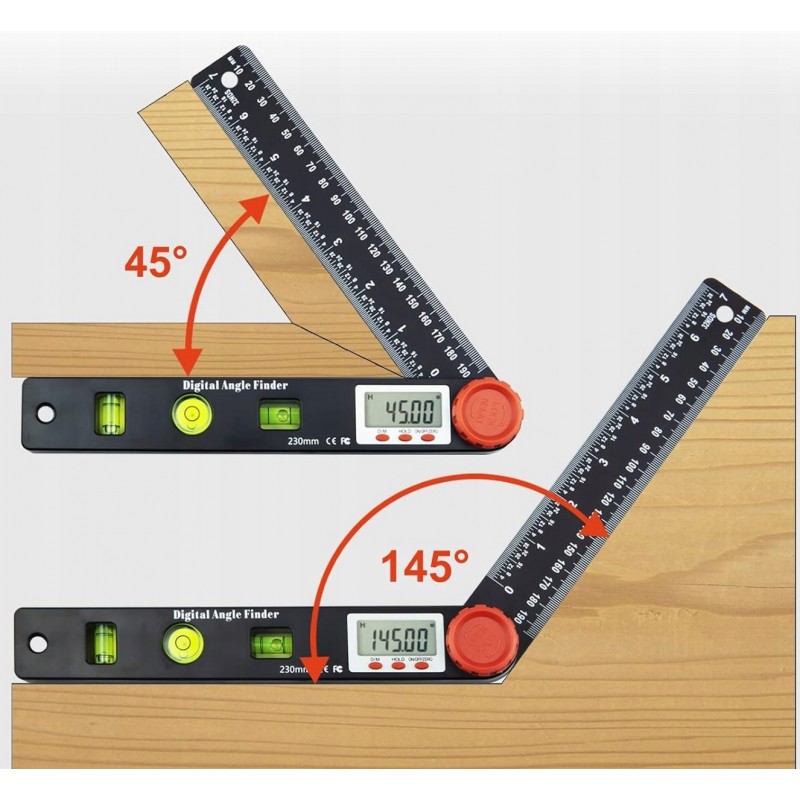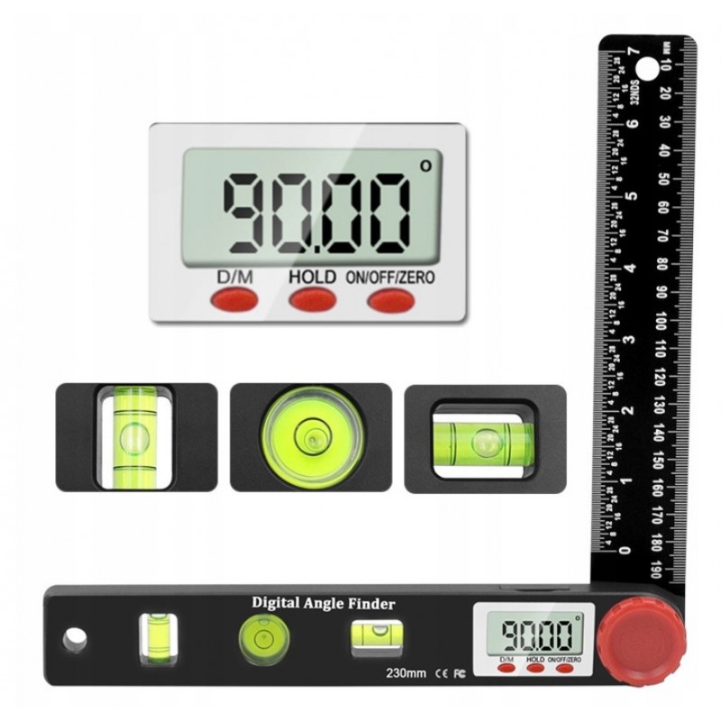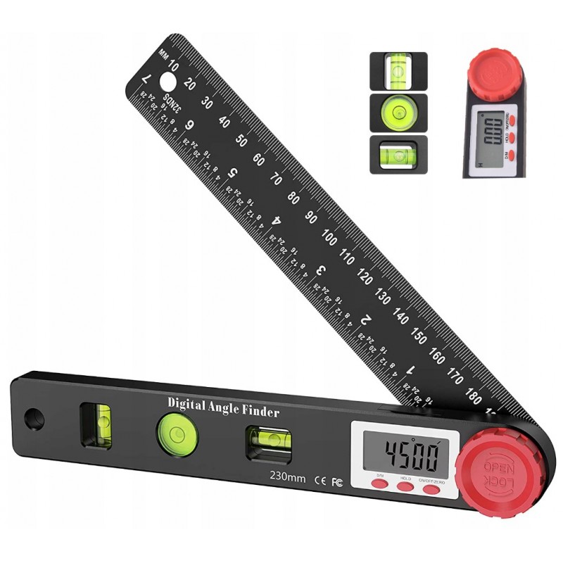 Kątomierz Elektroniczny Cyfrowy 230mm 360° + 3 POZIOMNICE