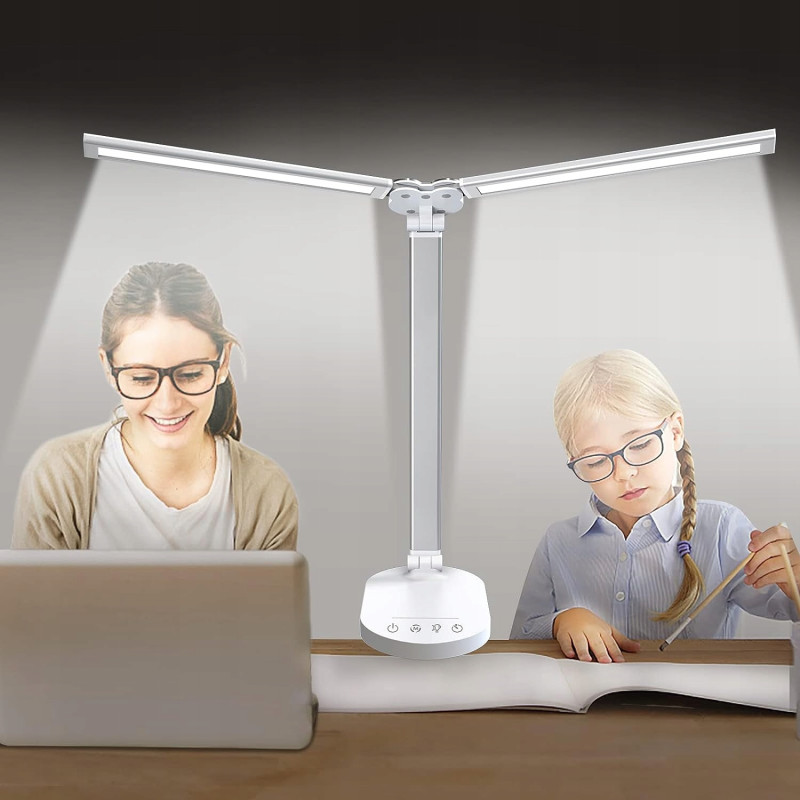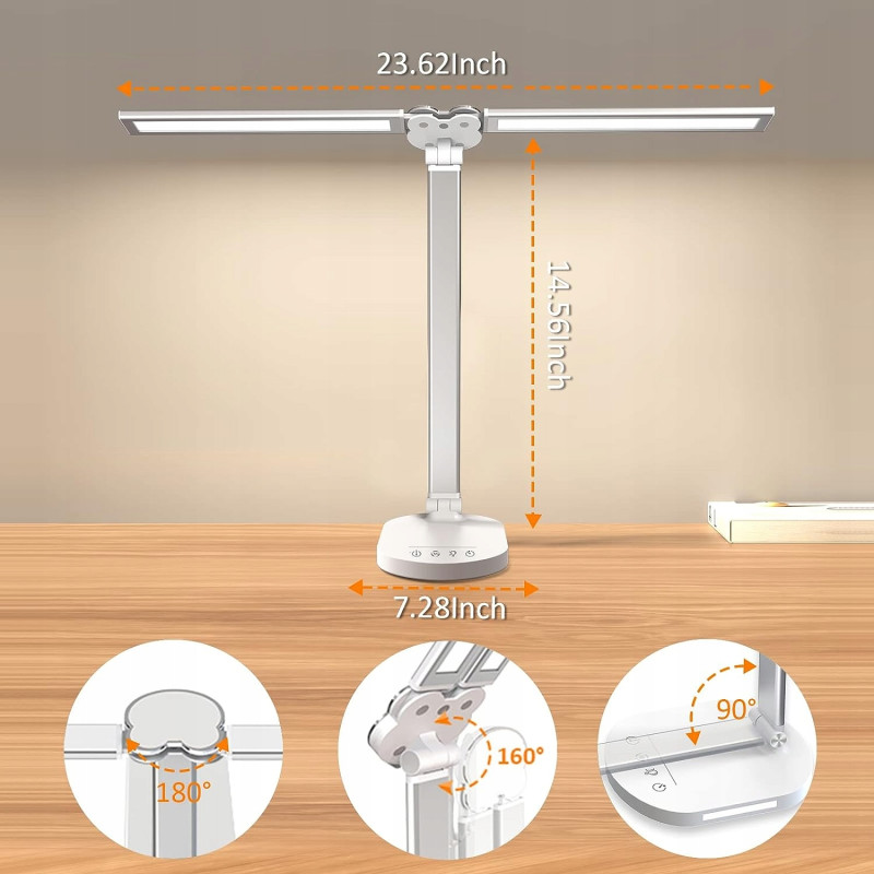Lampa biurkowa ma konstrukcję z podwójną głowicą i posiada antypoślizgową podstawę ( dzięki której lampa stabilnie trzyma się podłoża). Bardzo elastyczna konstrukcja ze stopu aluminium ze stopu aluminium. Wszystkie elementy lampy sa ruchome w bardzo dużym zakresie. A lewą i prawą głowicę można rozszerzyć o 180 °, kierunek w górę i w dół może obracać się do 165 °. Regulacja wielu kątów i składana konstrukcja zapewniają większy zasięg i kąt oświetlenia. Naszą lampę biurową można złożyć, można ją przenosić i nie zajmuje zbyt dużo miejsca.