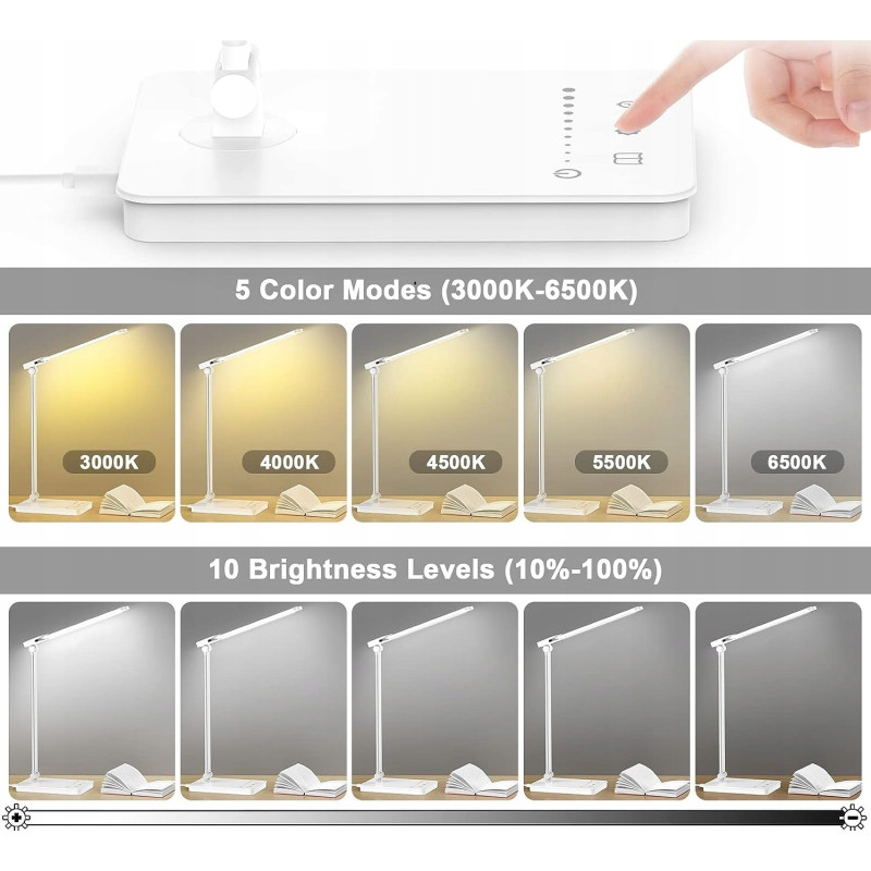 Lampa biurkowa LED podwójna MOCNA + ładowarka na biurko BIAŁA sterowana