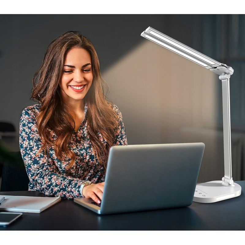 Lampa biurkowa emituje miękką, pozbawioną migotania poświatę, z regulowanymi ustawieniami światła, które pomagają tej lampie lepiej dopasować się do ostrości wzroku, idealnej do pracy, nauki, czytania lub relaksu.