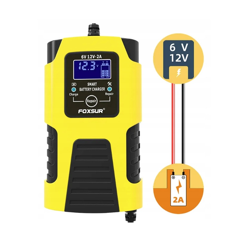 Mikroprocesorowy Prostownik Samochodowy do Akumulatorów 6V 12V 2A LCD