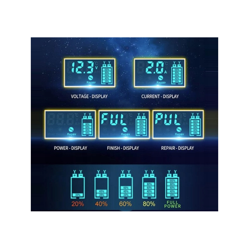 Prostownik ma specjalna funkcję " naprawiania akumulatorów rozładowanych do zera . Urządzenie wykorzystuje w tym trybie technologię impulsów o wysokiej i niskiej częstotliwości, ma to dobry efekt naprawy i aktywacji bardzo mocno rozładowanego akumulatora. Funkcję tę wykorzystujemy przy ładowaniu akumulatorów, które są zupełnie rozładowane lub przez długi czas były bezczynne i nie można ich naładować innymi prostownikami.