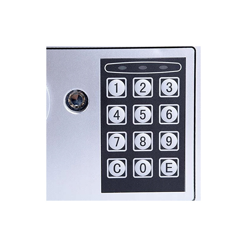 Na froncie drzwi znajduje się elektroniczny panel sterujący. Jest on zasilany przez 4 baterie AA, umiejscowione na wewnętrznej ściance drzwiczek. Mamy również dostęp do tradycyjnego zamka na klucz. Umożliwia on awaryjne otwarcie sejfu w przypadku zapomnienia kodu.