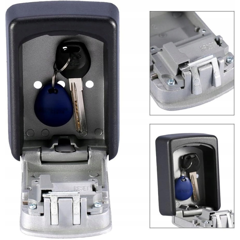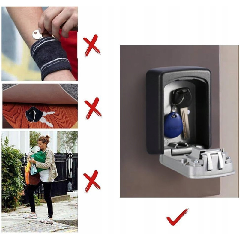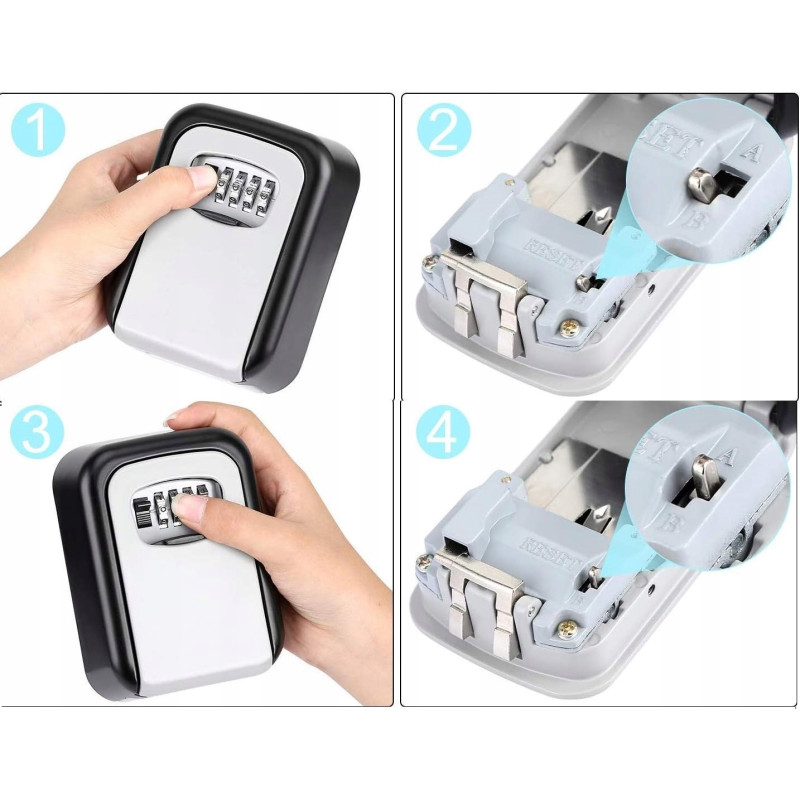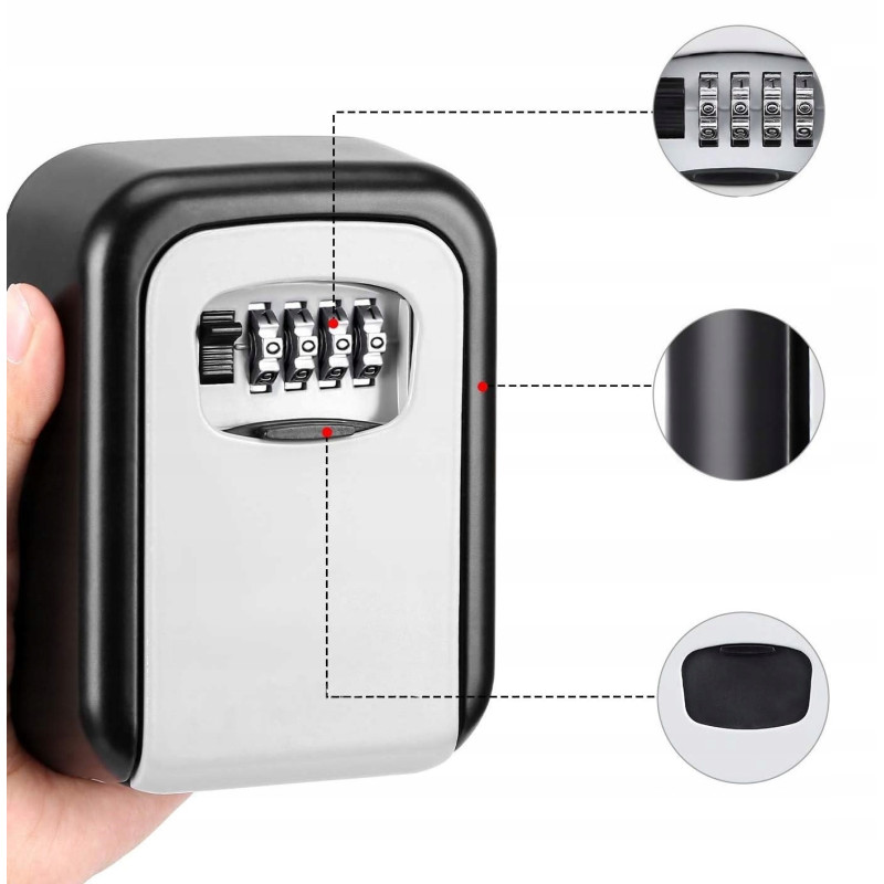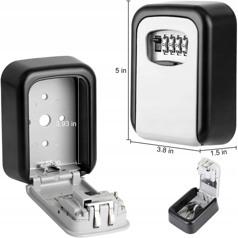 - Wszechstronność: Doskonała dla sytuacji awaryjnych, dostępu dla opieki zdrowotnej, domów wakacyjnych, przechowywania zapasowych kluczy i wielu innych. Regulowana, 4-cyfrowa kombinacja. Wytrzymały materiał. Łatwy montaż.