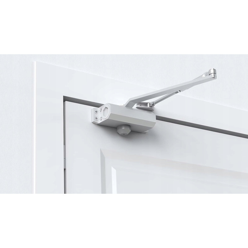 - PODWÓJNA REGULACJA – samozamykacz posiada możliwość regulacji prędkości zamykania oraz dobicia. Drzwi przy końcowej fazie mogą zwolnić lub przyspieszyć. Np. możemy ustawić, że jeśli wychodzimy drzwi przy końcowej fazie będą się domykać szybko, lub wręcz przeciwnie, wolno. Jest to szczególnie przydatne dla osób starszych, niepełnosprawnych, a także dzieci – otwieranie i zamykanie drzwi staje się łatwiejsze.