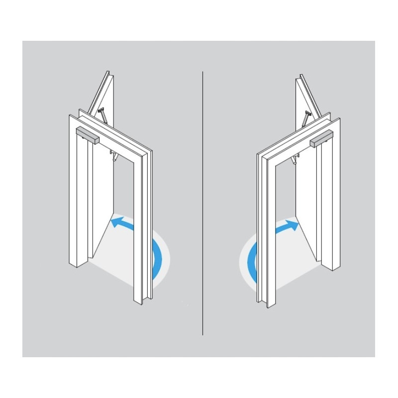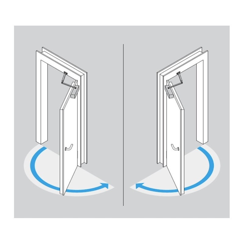 Stosowany w drzwiach zewnętrznych i wewnętrznych, prawych i lewych, o szerokości skrzydła do 1200 mm i wadze do 60 kg. Wyposażony w termodynamiczne zawory dla stałej wydajności, odporny na warunki atmosferyczne, nawet do -15°C.