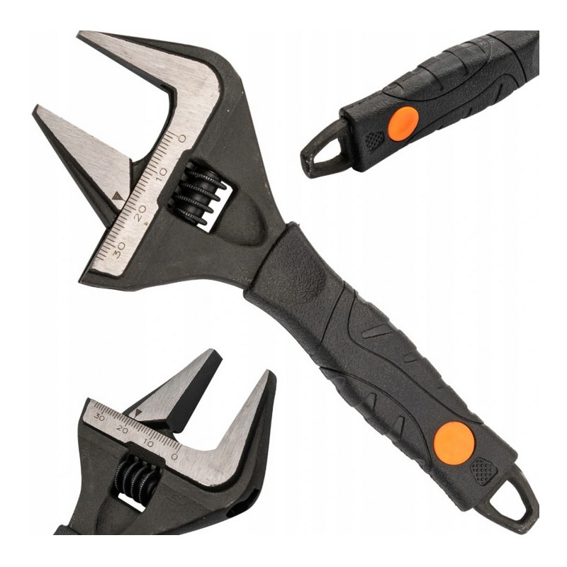 Poszerzony zakres rozstawu szczęk (w stosunku do standardowych w tym rozmiarze). Rozstaw szczęk jest o 40% większy od standardowych kluczy. Poszerzona i zwężona głowica umożliwia pracę w trudno dostępnych miejscach.