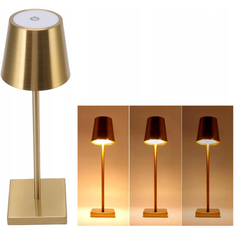 ELEGANCKA nowoczesna Lampa Stołowa LED bezprzewodowa sterowanie dotykowe ZŁOTA