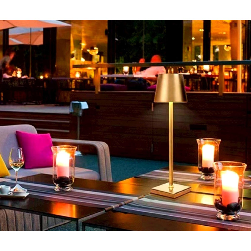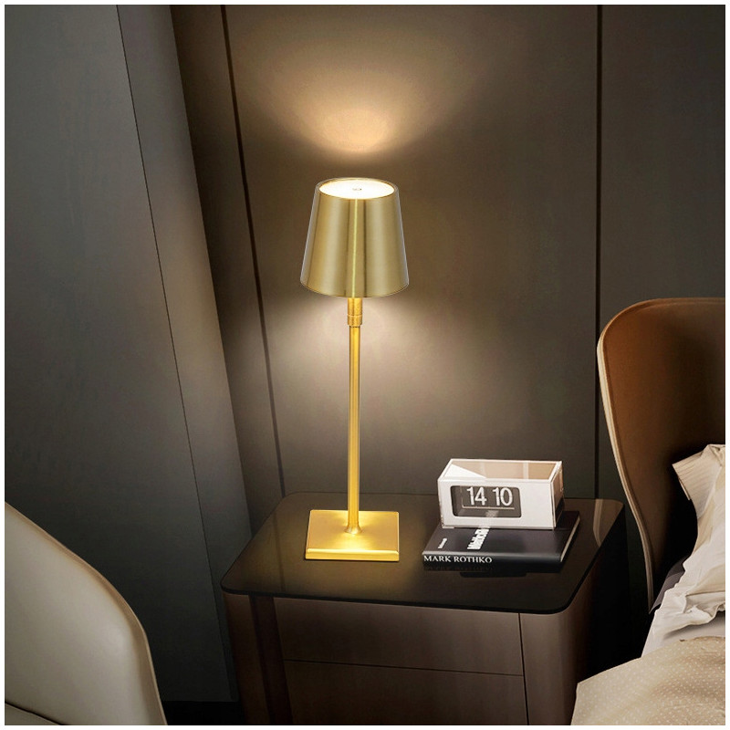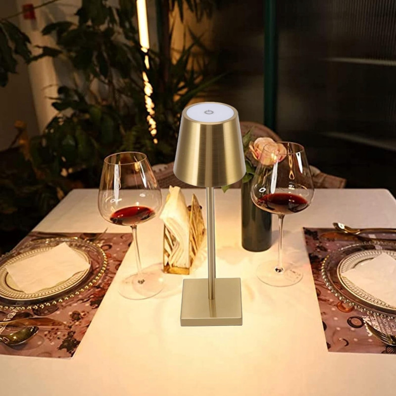 Przedstawiamy elegancką, złotą lampę stołową, która łączy w sobie klasyczny włoski design z najnowszą technologią LED. Ta bezprzewodowa lampa stołowa nie jest zwykłym dodatkiem do Twojego wnętrza – to prawdziwy element dekoracyjny, który doda klasy i wyrafinowania każdemu pomieszczeniu.