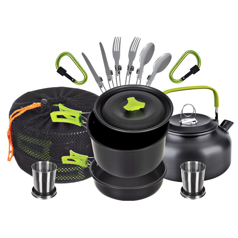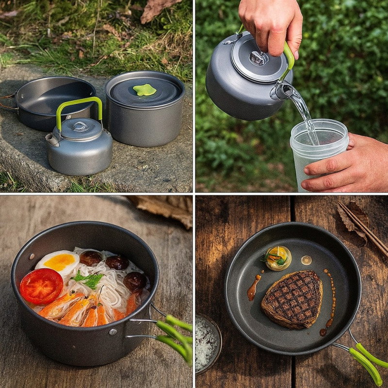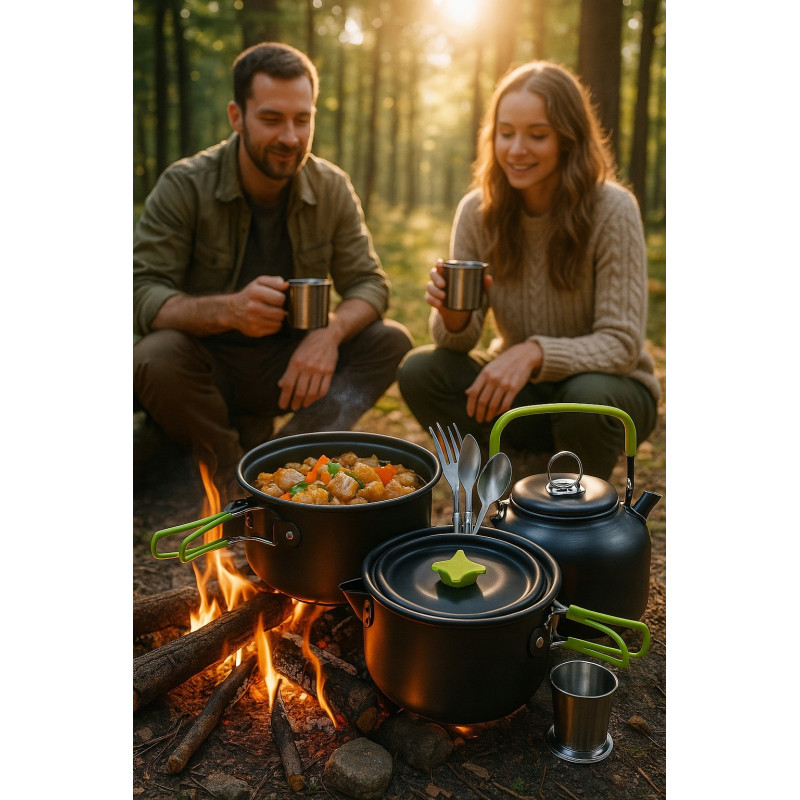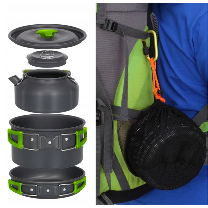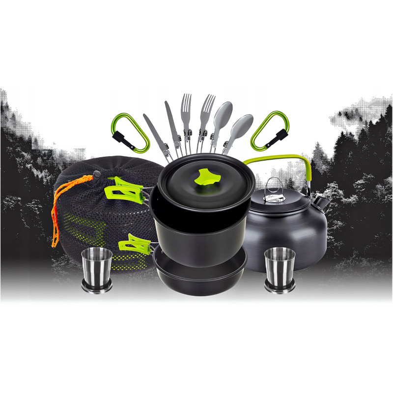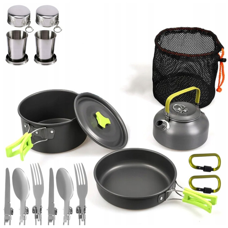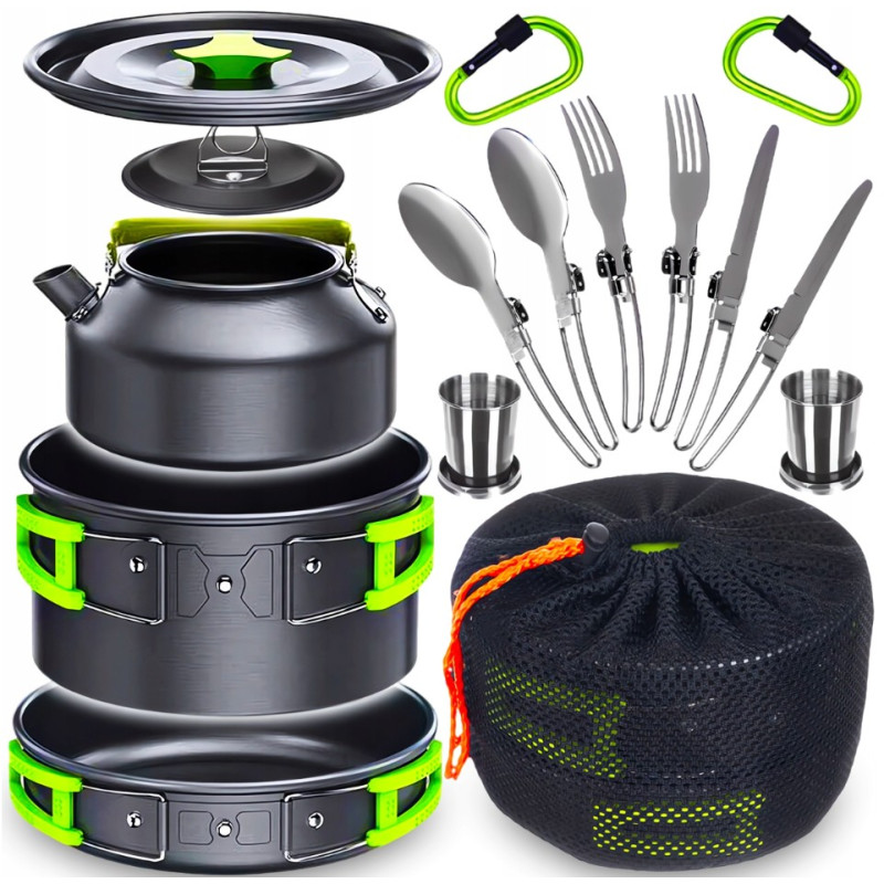 Naczynia Turystyczne 18w1 – Duży Zestaw Garnków Sztućców