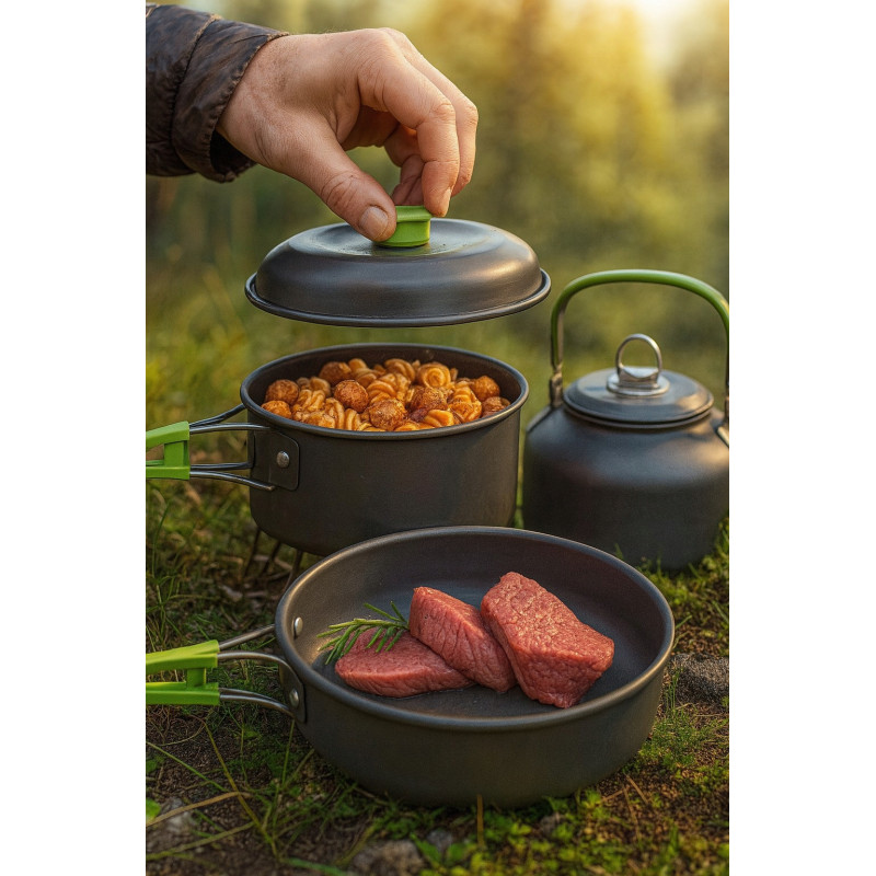Niezależnie, czy planujesz noc pod namiotem, wyjazd kamperem czy survivalowy trekking – ten zestaw pozwoli Ci przygotować pełnowartościowy posiłek w każdych warunkach.
