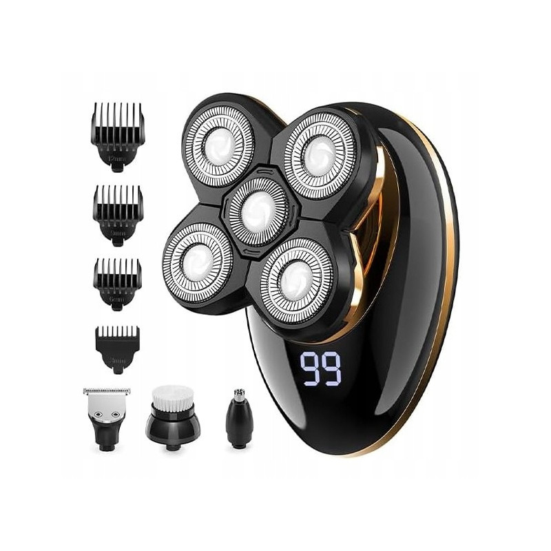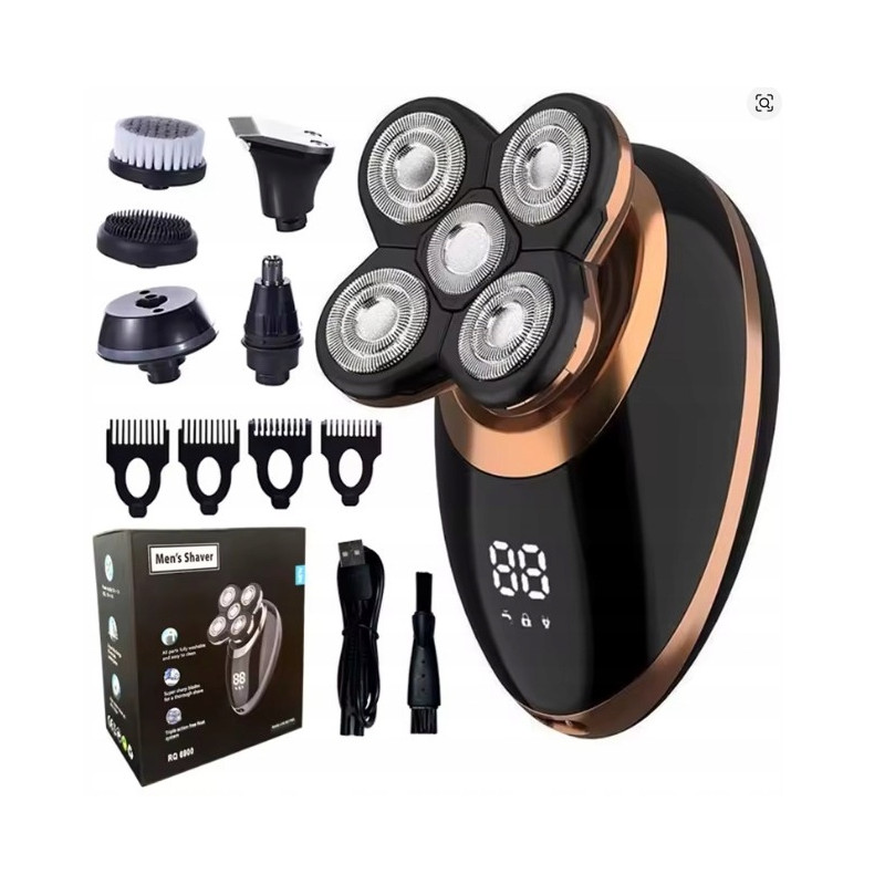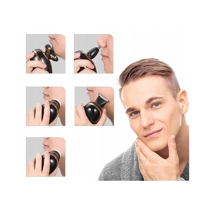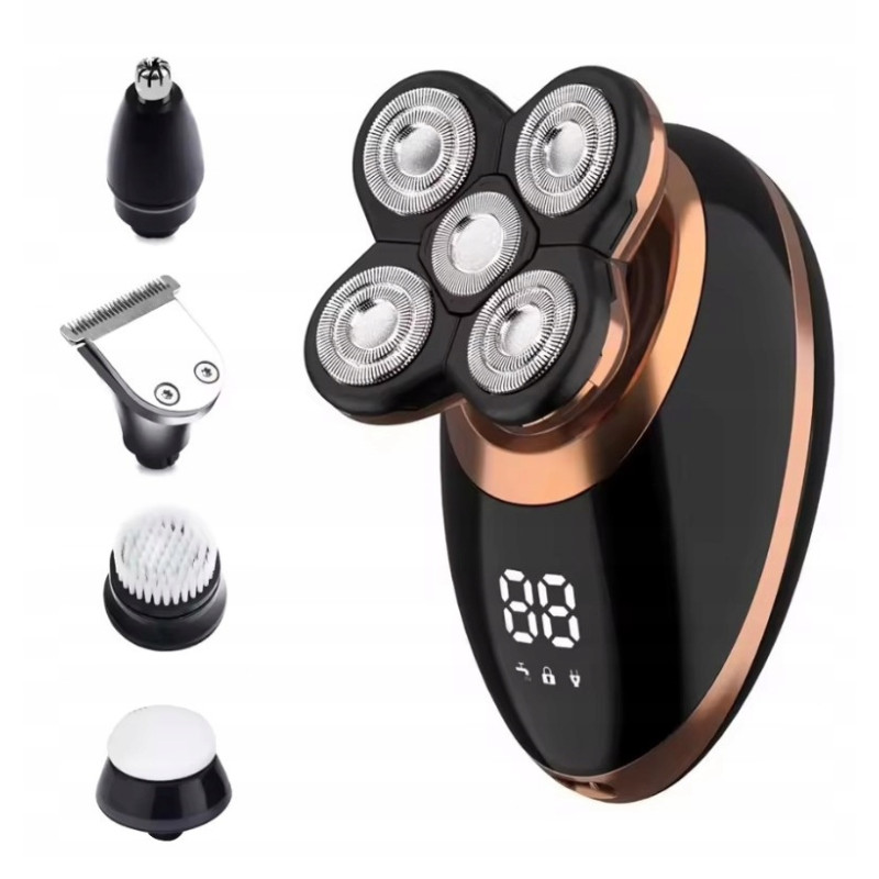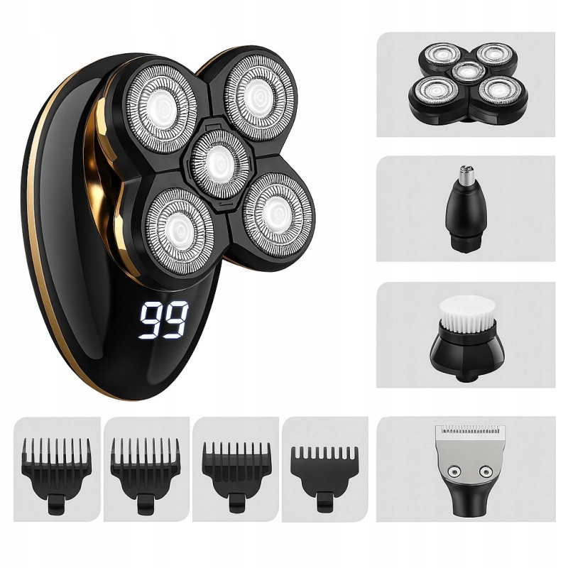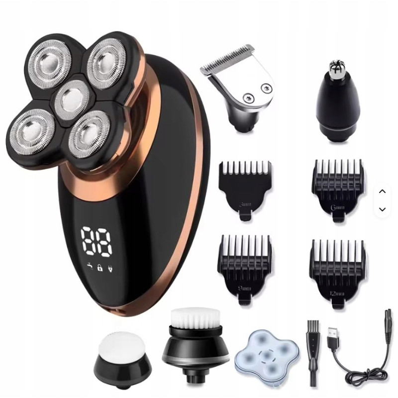 - 5 w 1: golarka rotacyjna, trymer do brody, trymer do nosa i uszu, szczoteczka oczyszczająca, głowica do masażu twarzy