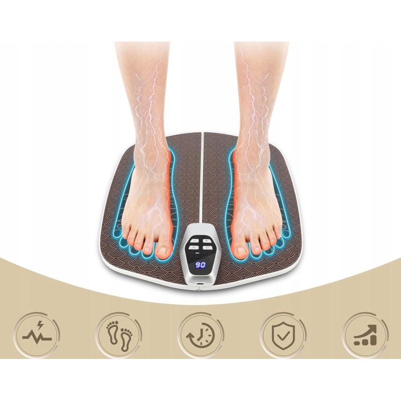 to nowoczesne urządzenie wykorzystujące technologię EMS (Electrical Muscle Stimulation) – czyli elektryczną stymulację mięśni. Działa poprzez wysyłanie delikatnych impulsów elektrycznych, które pobudzają nerwy i mięśnie stóp oraz łydek, imitując naturalne skurcze mięśni. Efektem jest uczucie masażu, relaksu i poprawa krążenia krwi.
