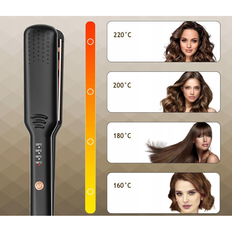 - Regulacja temperatury: Cztery poziomy – 160°C, 180°C, 200°C, 220°C – idealne dopasowanie do każdego rodzaju włosów.