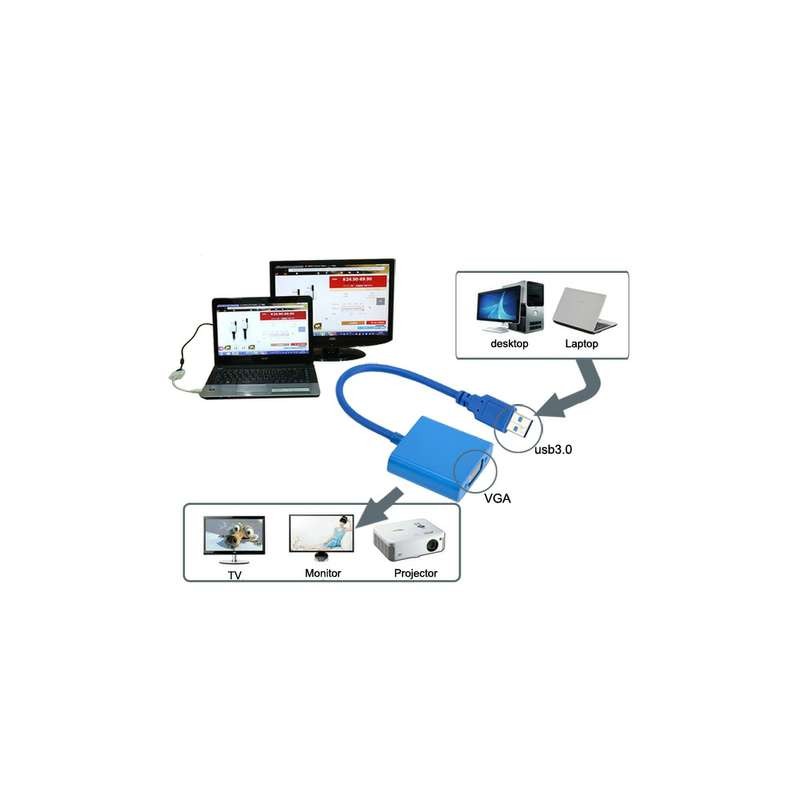 Adapter umożliwia podłączenie urządzenia wyposażonego w złącze USB 3.0 do urządzenia wyposażonego we wtyk VGA. ( monitor, TV, projektor ).
